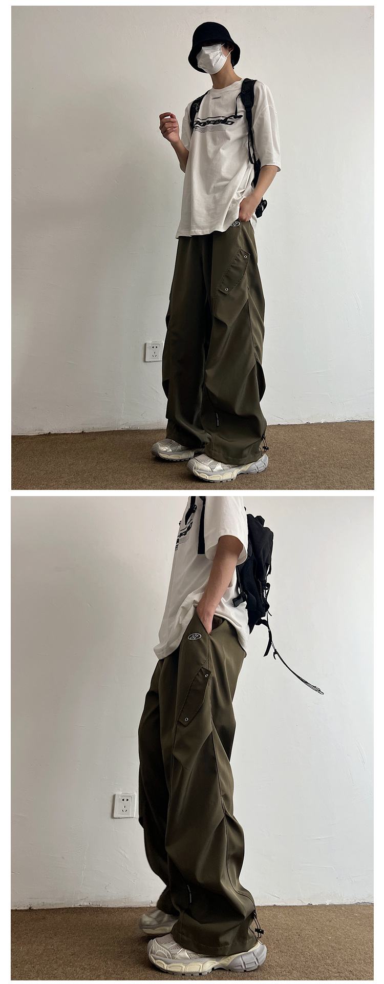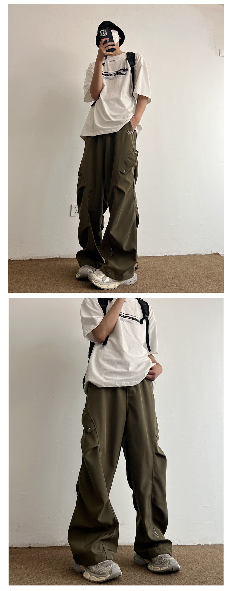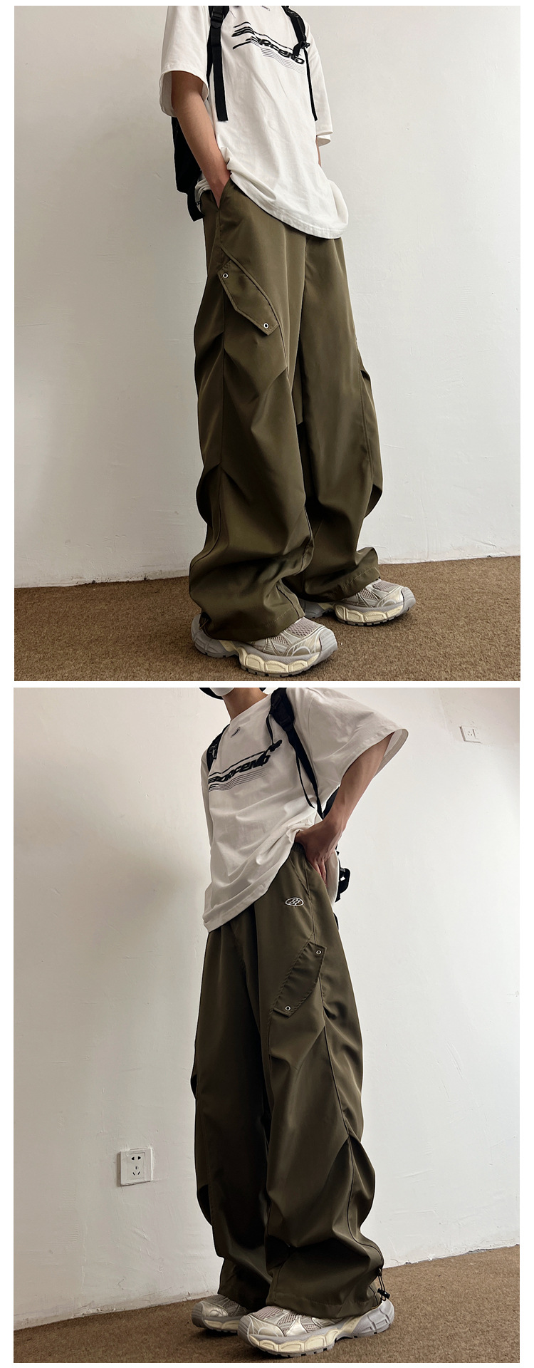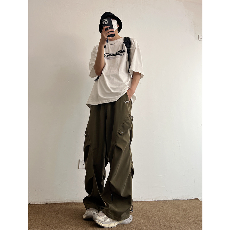 Workwear Paratrooper Pants Men's Wide Leg Loose Straight Casual Pants