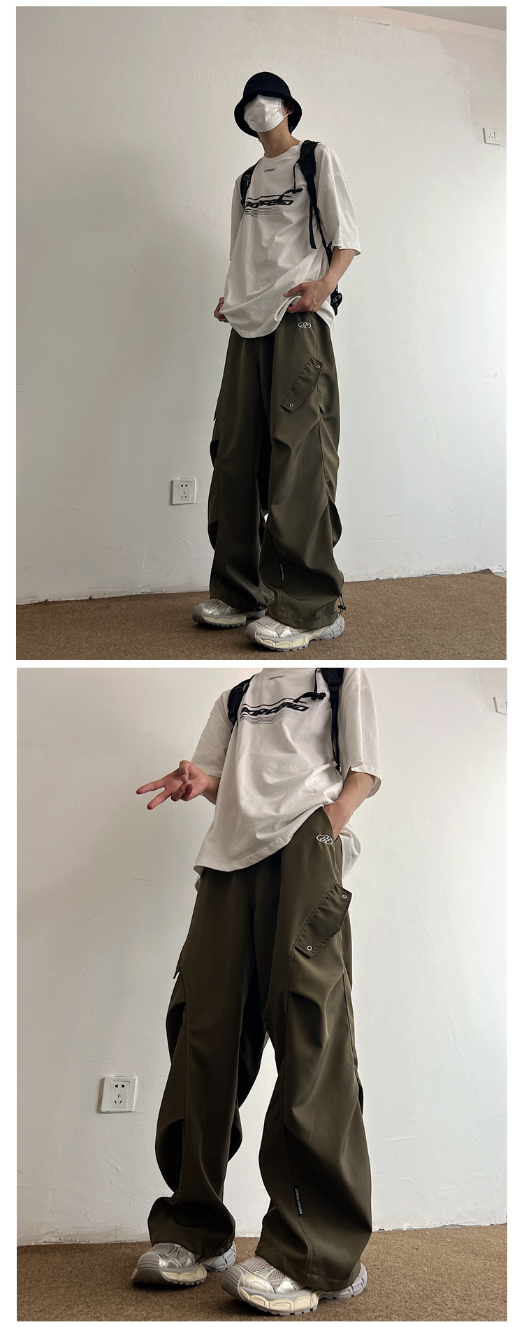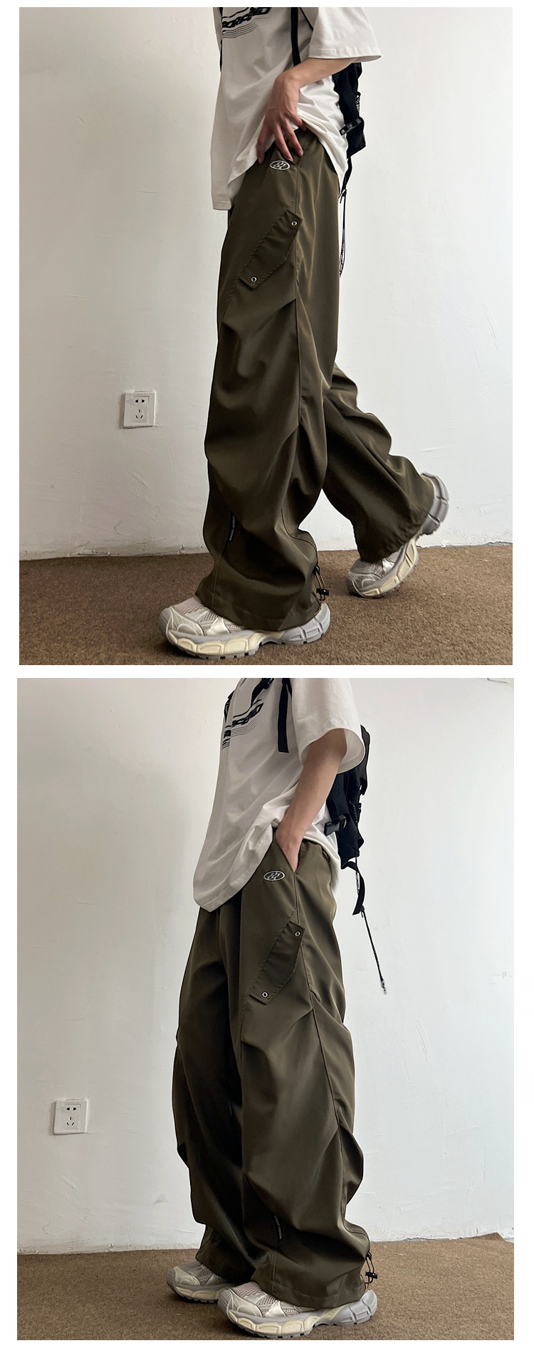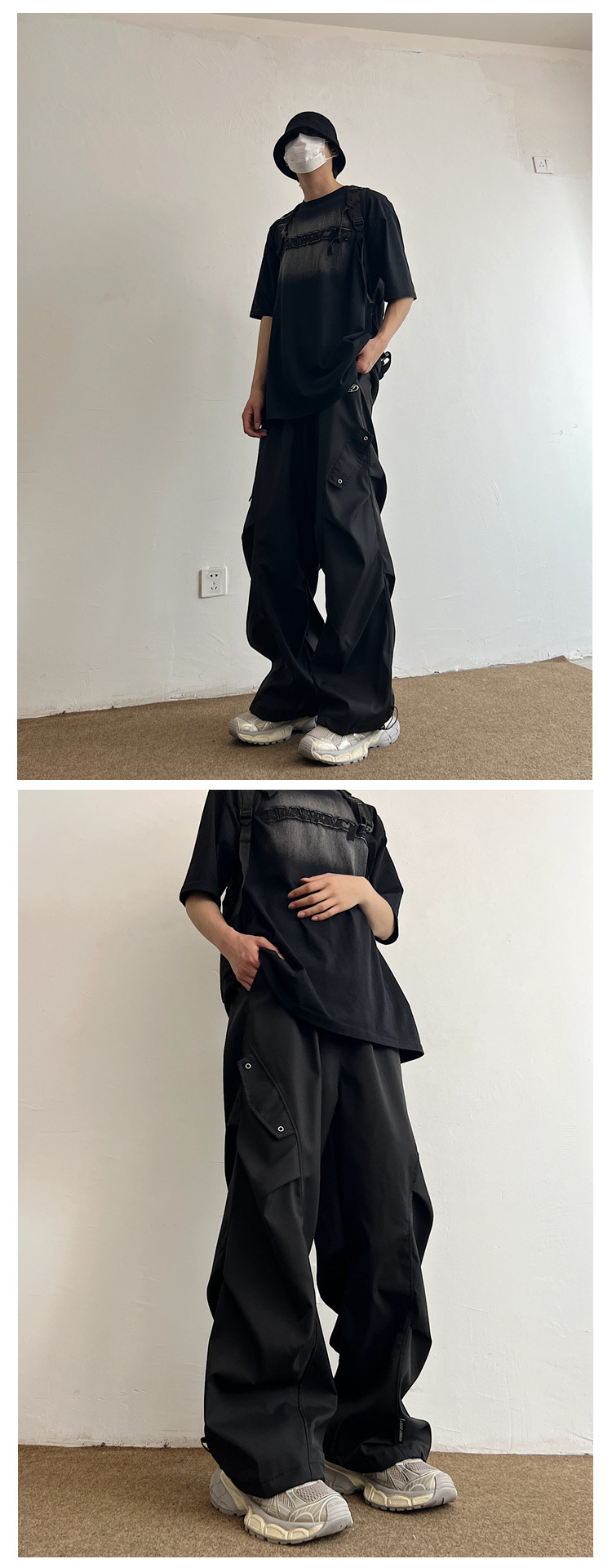Workwear Paratrooper Pants Men's Wide Leg Loose Straight Casual Pants