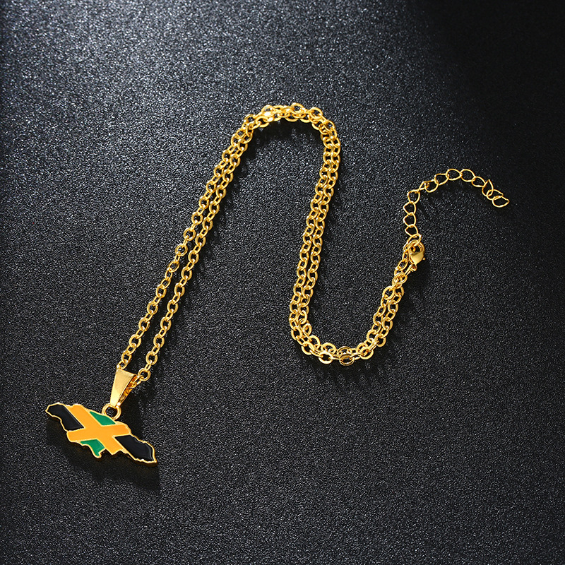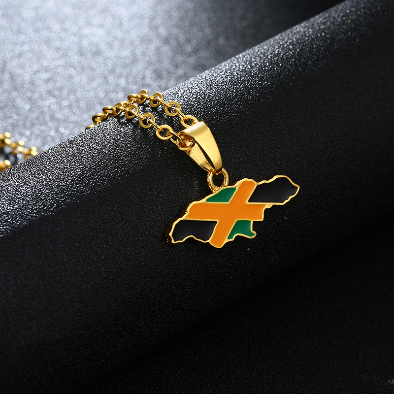 World Map Jamaica Map Flag Pendant Necklace