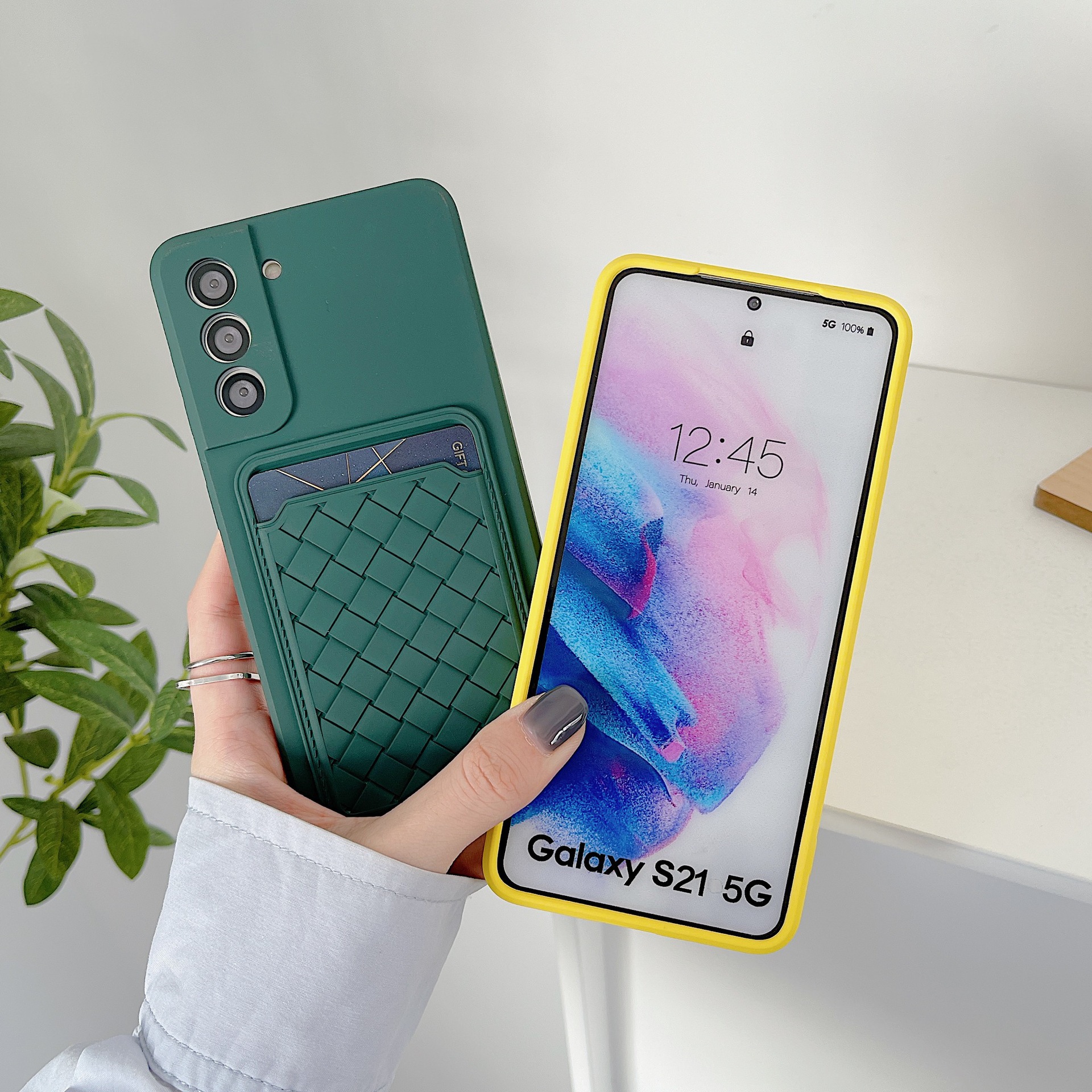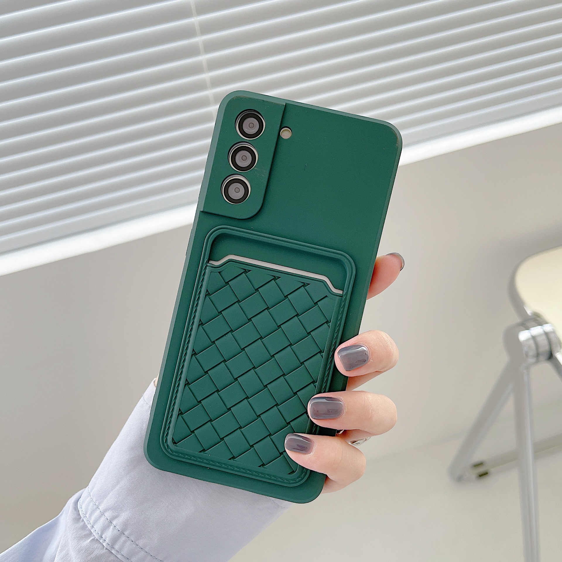 Woven Pattern Card Phone Case Fine Hole Silicone Protective Cover