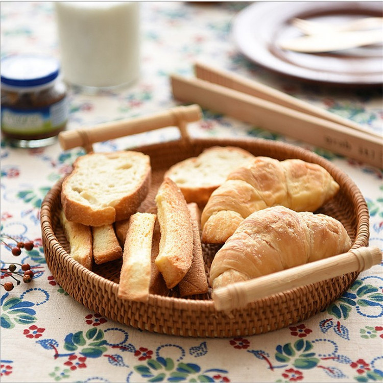 Application: Multifunctional and large-capacity round rattan storage tray, which can store bread, fruits, snacks, etc.