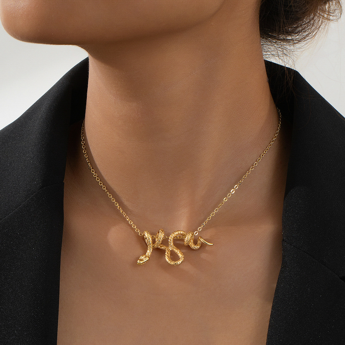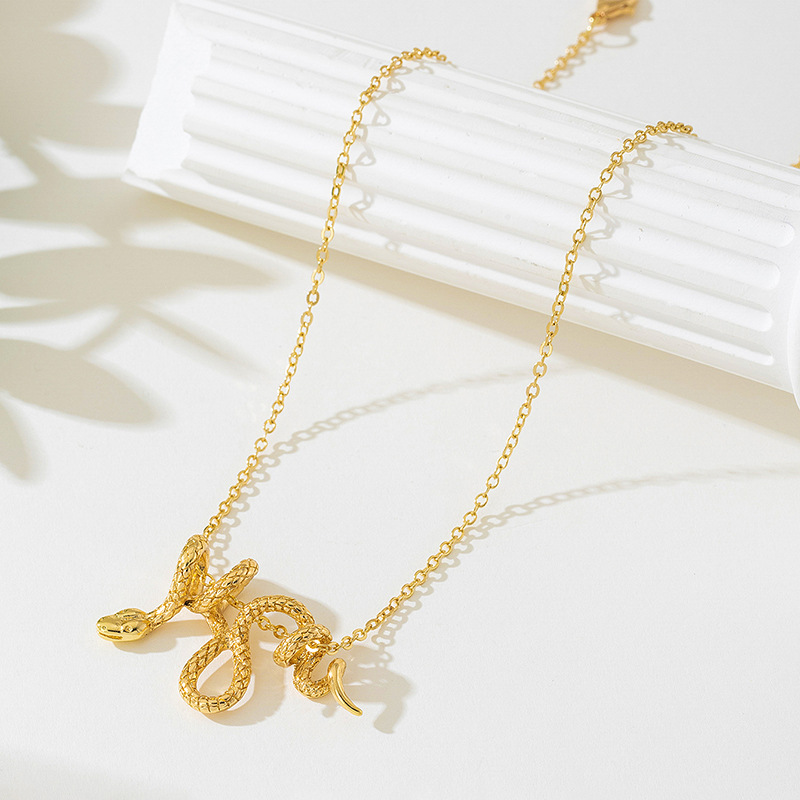 Wrapped Snake Necklace For Women Cool Stylish Design Serpentine Pendant Niche Creativity Versatile Collarbone Chain Banquet