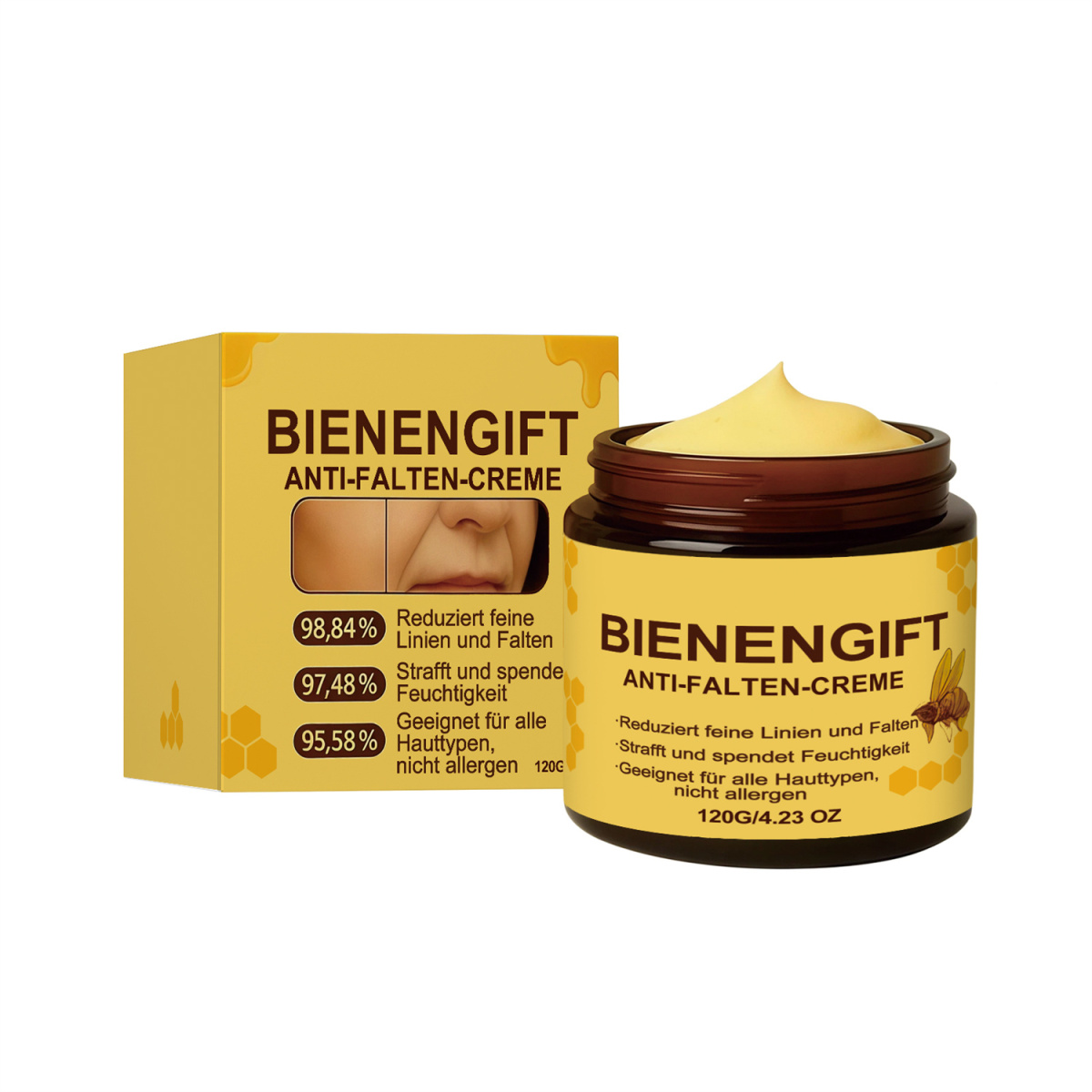 Ingredients: water, mineral oil, glycerin, glyceryl stearate, 1,2- hexanediol, carbomer, arginine, bee venom, hydrolyzed collagen, hyaluronic acid and salicylic acid.
