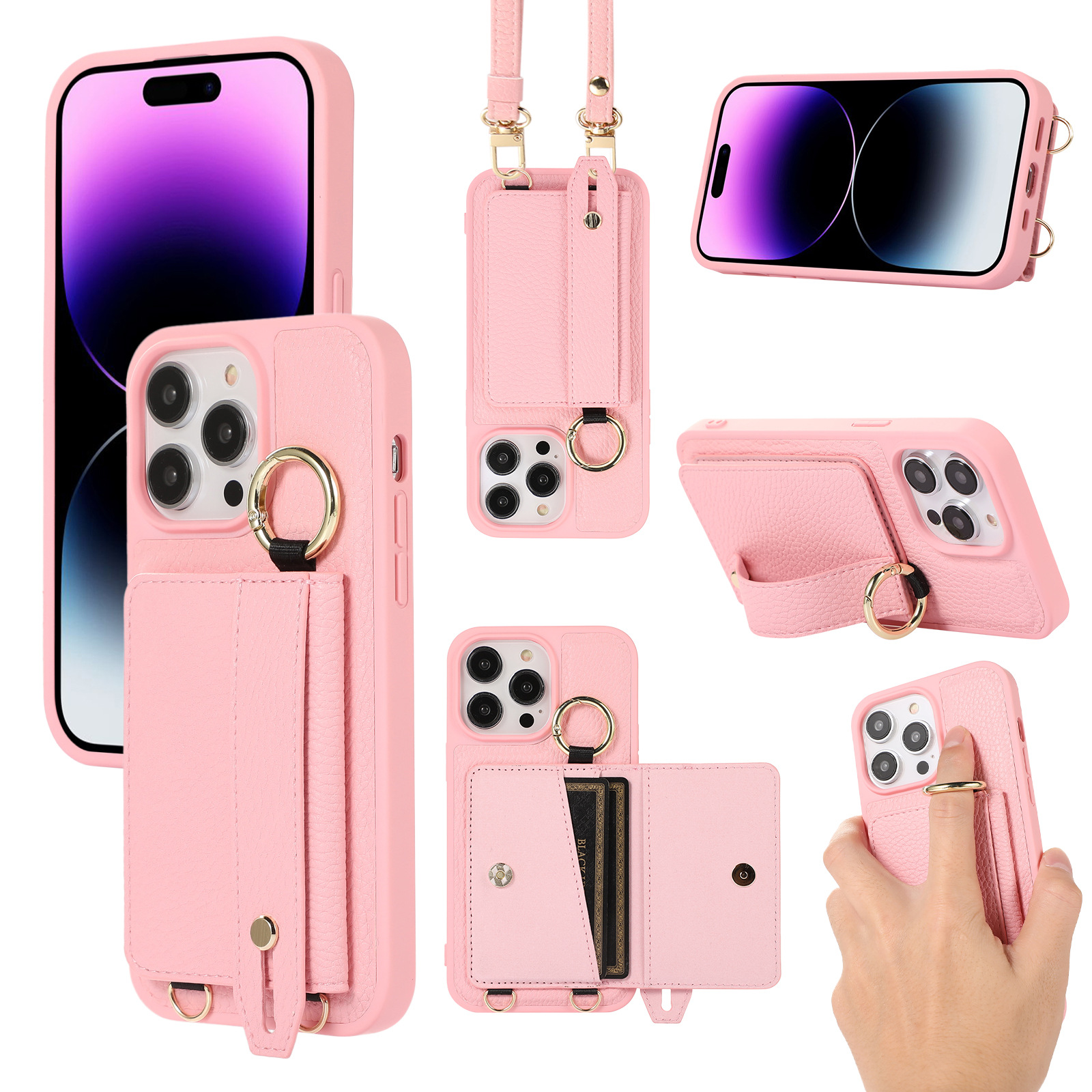 Color: Black Card clamp cross body lanyard, white card clamp cross body lanyard, khaki card clamp cross body lanyard, pink card clamp cross body lanyard, brown card clamp cross body lanyard, wine red card clamp cross body lanyard