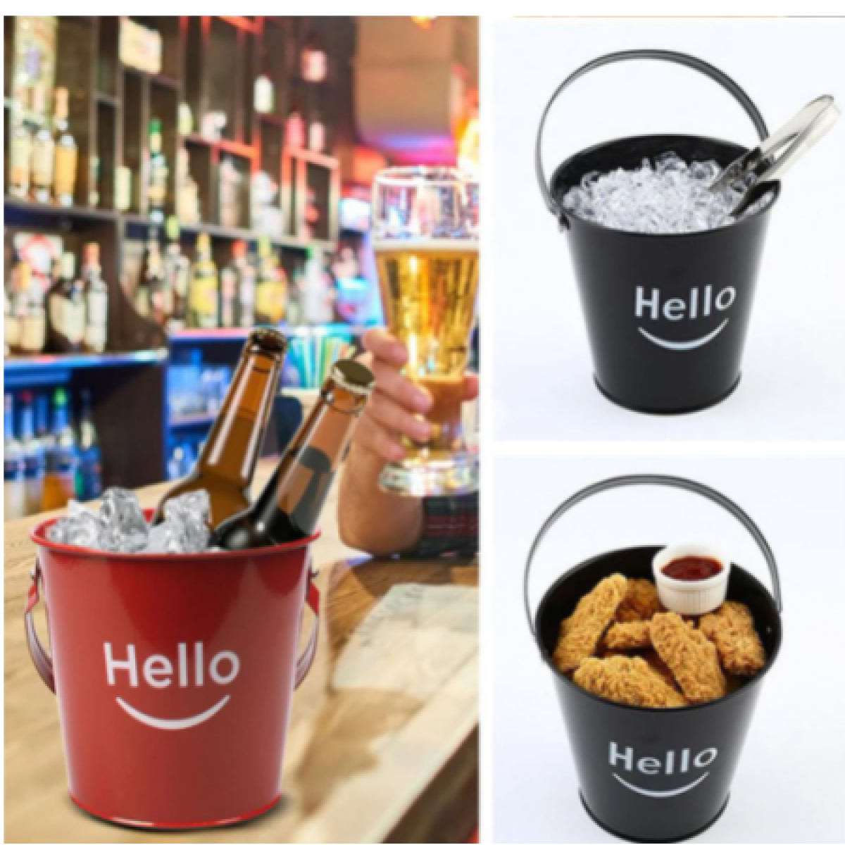 Wrought Iron Black And White Smile Ice Bucket Mini Bucket Fries Snack Fries Bucket