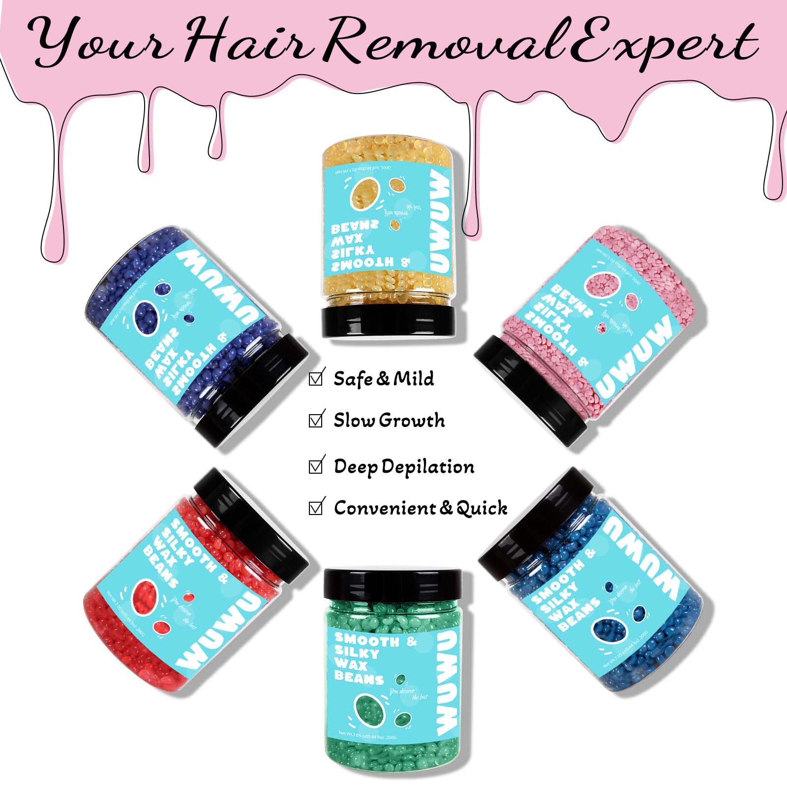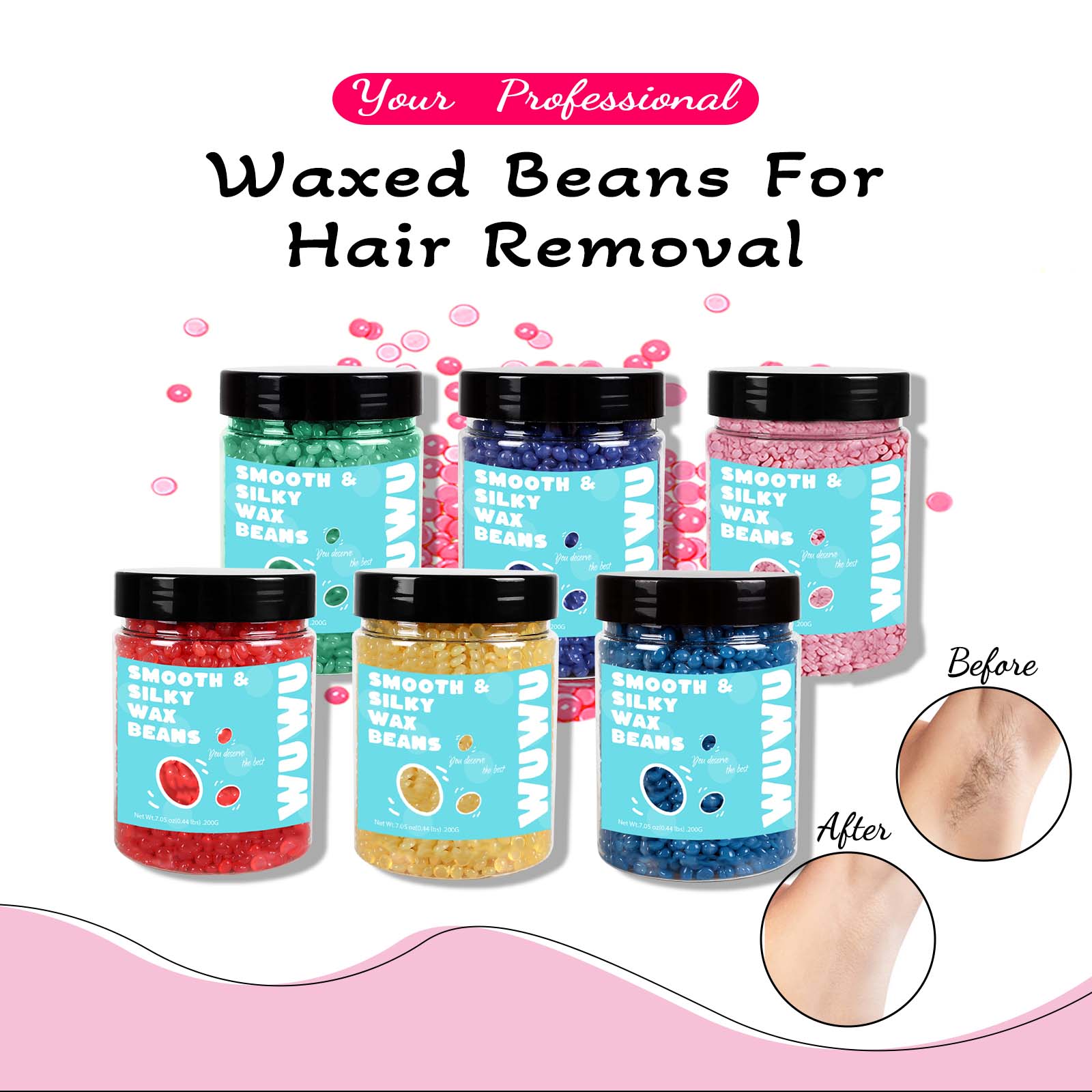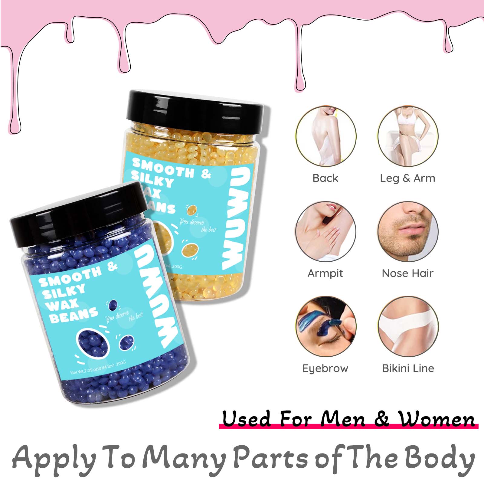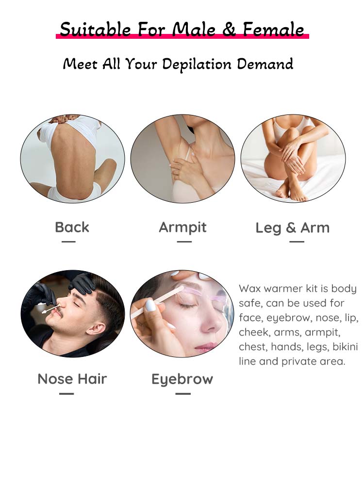 The wax beans are gentle yet powerful with a remarkable hair removal rate, can be used for hair removal on all parts of the body and face, including coarse hair and fine hair.