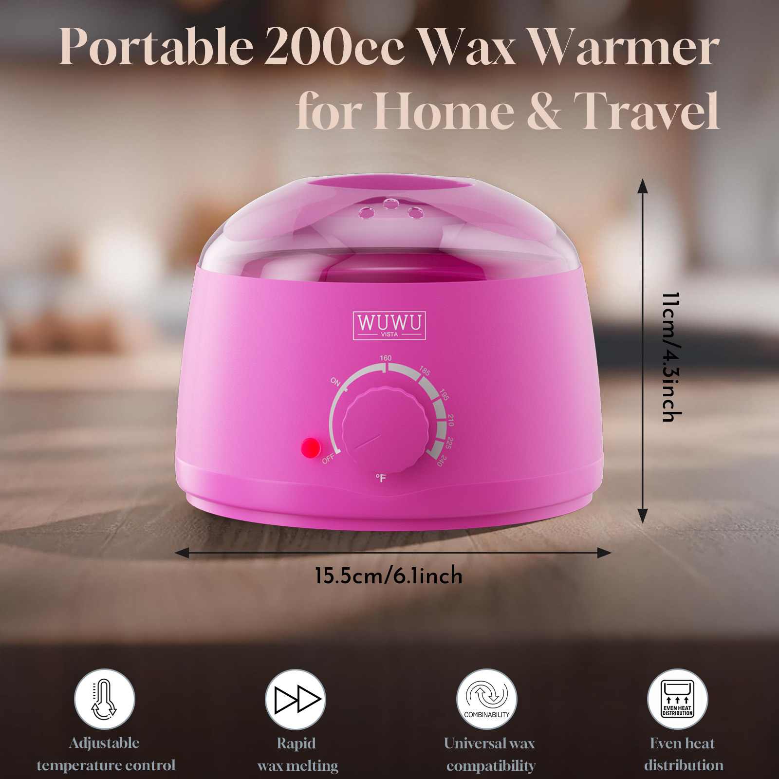 WUWUVISTA 8Pc Waxing Kit, Hair Removal Kit With Warmer, Wax Beans & Silicone Accessories For Full Body And Sensitive Skin, US EU UK Plug
