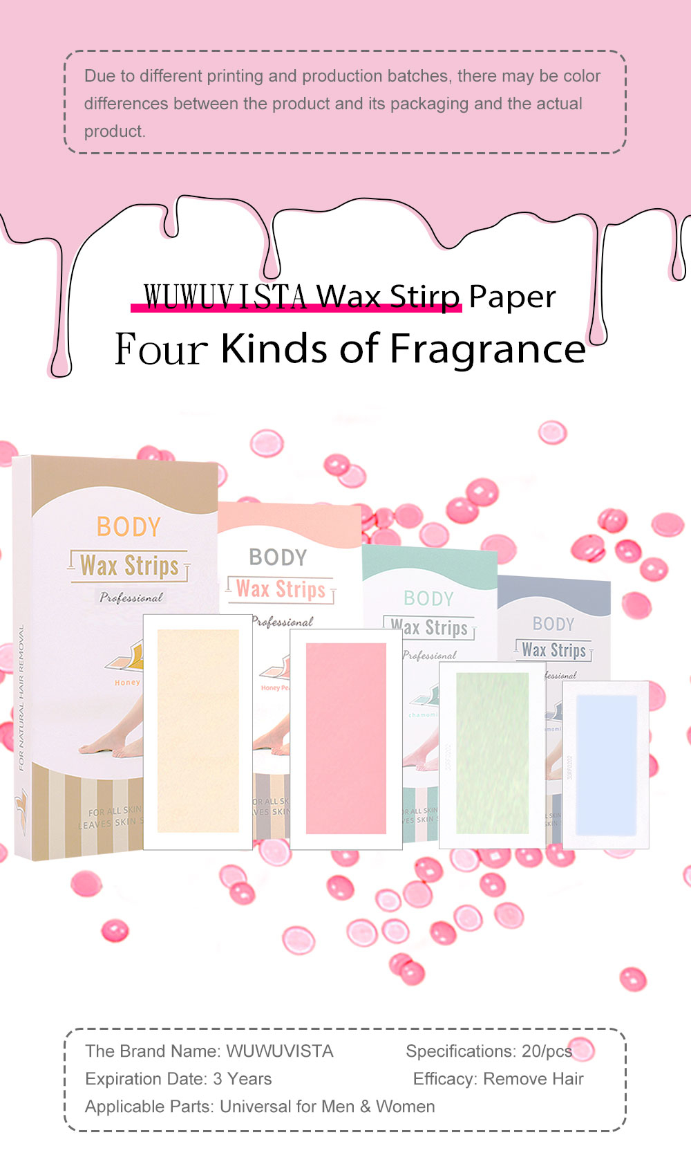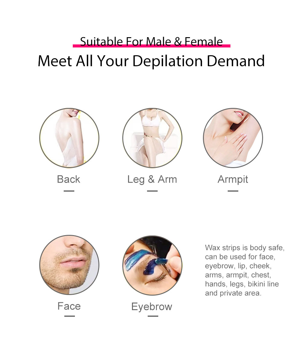Hair Removal Wax Strips Roll Underarm Wax Strip Paper Waxing Wipe Sticker Beauty Tool for Women Men Face Leg Body Facial Lip Eyebrow Leg Arm Body Hair Removal Specification: Product name: beeswax depilatory paper (breathable non-woven fabric) Net weight: 60g Packing method: 10 sheets of double-sided (20 sheets) Wax paper size: 180*90mm The packing ruler can be 187*98*20mm It can be cut into small pieces and used locally. Product Color: Honey, Aloe, Honey Peach, Chamomile Note: Due to the different monitor and light effects, the actual color of the item might be slightly different from the color shown in the pictures. Thank you! Please allow a 1-2cm measuring deviation due to manual measurement.