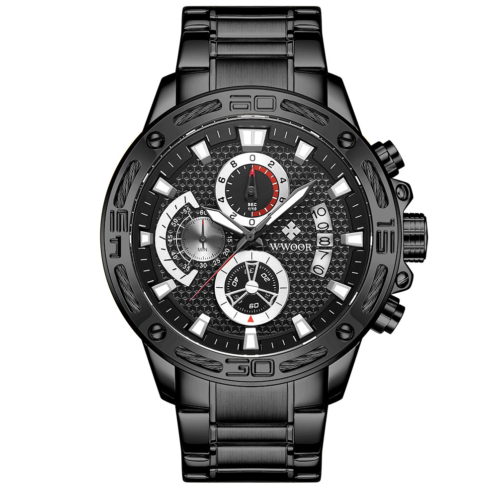 Watch functions: small three hands, world time, luminous, timing, calendar