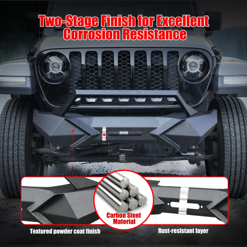 Product Name:X Style Front Bumper with Winch Plate Compatible with Wrangler JK (2007-2018) & JL (2018+)- Heavy Duty Black Textured Manganese Steel Construction, Perfect for On and Off-Road Used
