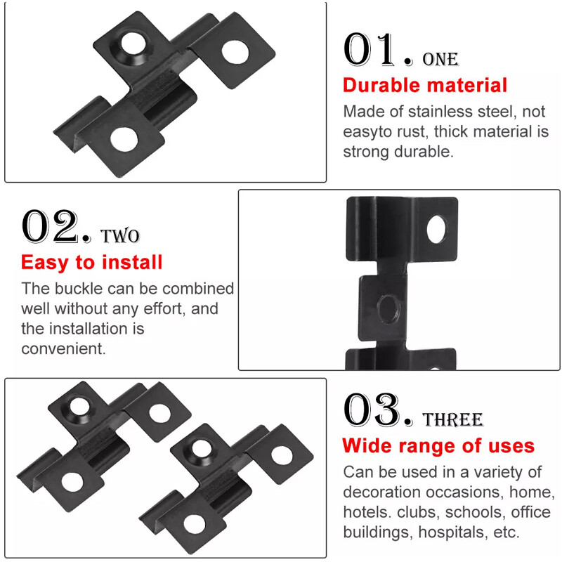 [Hidden Type]: The fasteners provide a gap of 3 mm between the plates to ensure a perfect fit. After installation, it does not take up space and is very concealed. Hidden fixed fasteners can be used in various decoration occasions such as homes, hotels, schools, and offices.