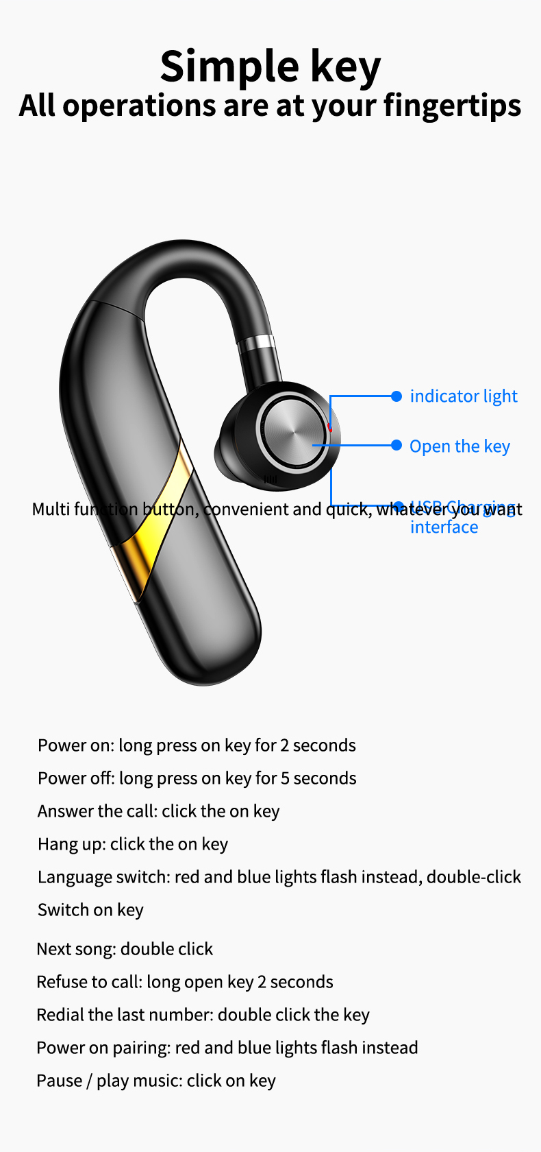 Wireless Bluetooth headset*1 (single ear) manual*1, usb*1 or Wireless Bluetooth headset*1 (single ear), manual*1, charging compartment*1, usb*1, accessory earphone