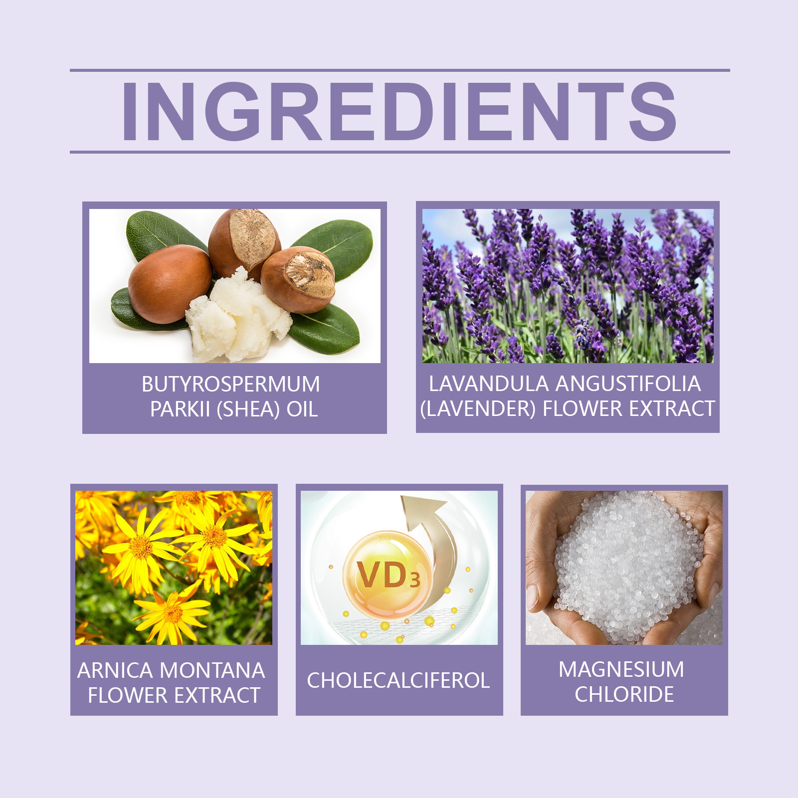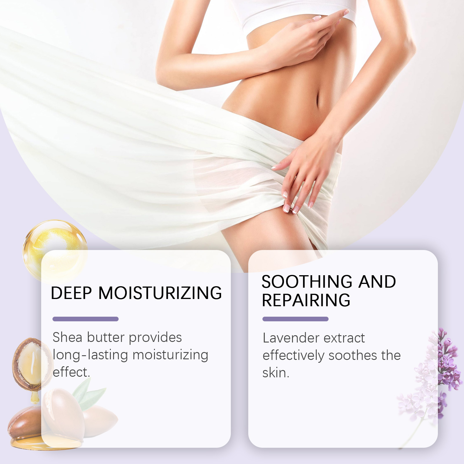 Our body soothing cream contains shea butter, lavender extract, Arnica flower extract. It provides a long-lasting moisturizing effect. Lavender extract soothes the skin. Its application method is simple: clean skin and keep dry, take a proper amount of soothing cream on the palm, gently apply to the area in need of care in a circular motion, gently massage until fully absorbed. Arnica flower extract can reduce inflammation. No irritating ingredients, safe to use, no burden.
