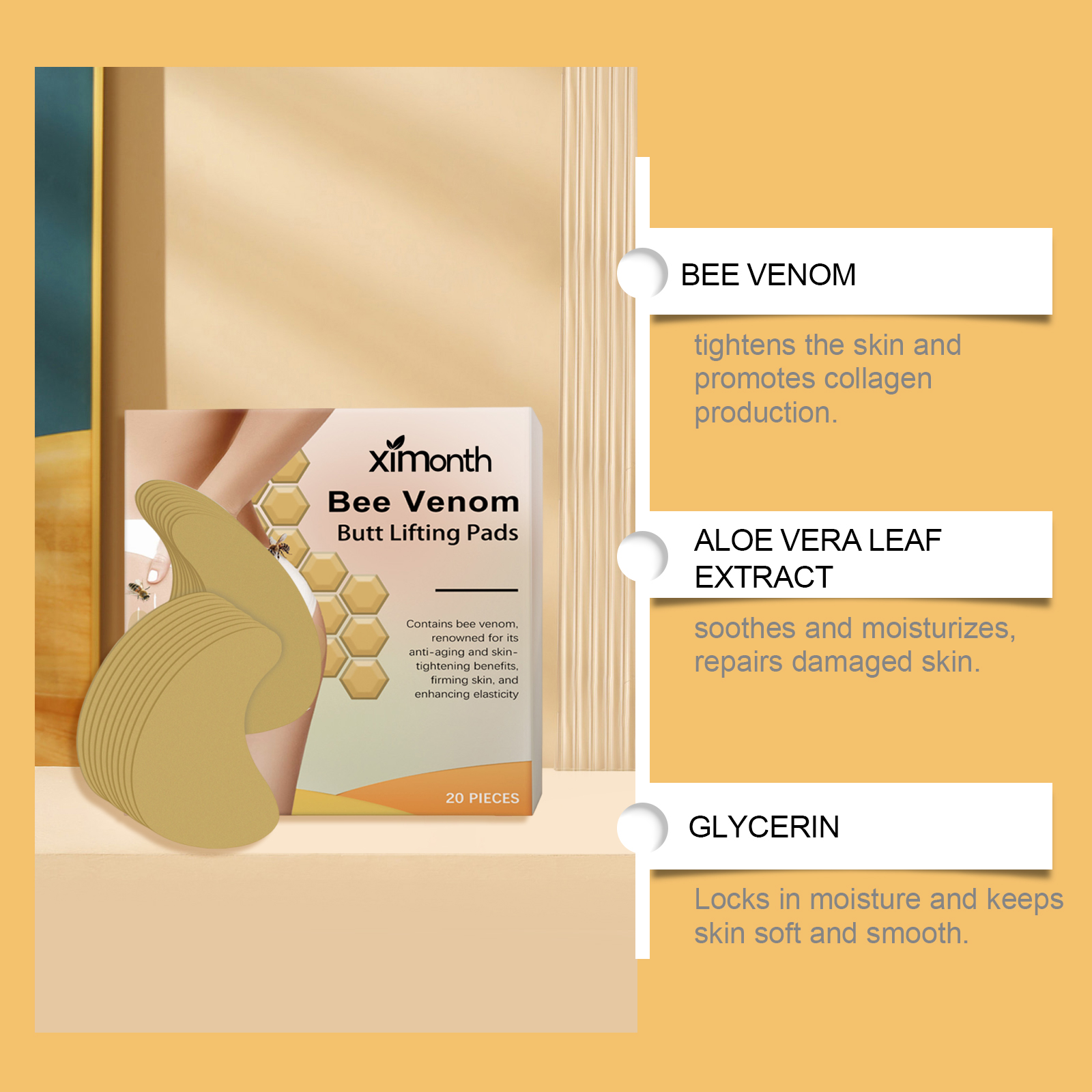 Our hip care pad is carefully formulated with bee venom, aloe vera leaf extract and glycerin. Specifically designed to help firm the skin and lift sagging buttocks. Create the perfect curve. Continuous use can enhance the elasticity of the skin on the buttocks, and the lifting effect on the buttocks is designed to last longer. The usage method is extremely convenient: 1. Clean and dry the skin, then apply the patch to the buttocks; After 15 to 30 minutes, remove the patch and gently massage the remaining essence until it is fully absorbed. Promote collagen synthesis, enhance skin elasticity and prevent skin sagging.