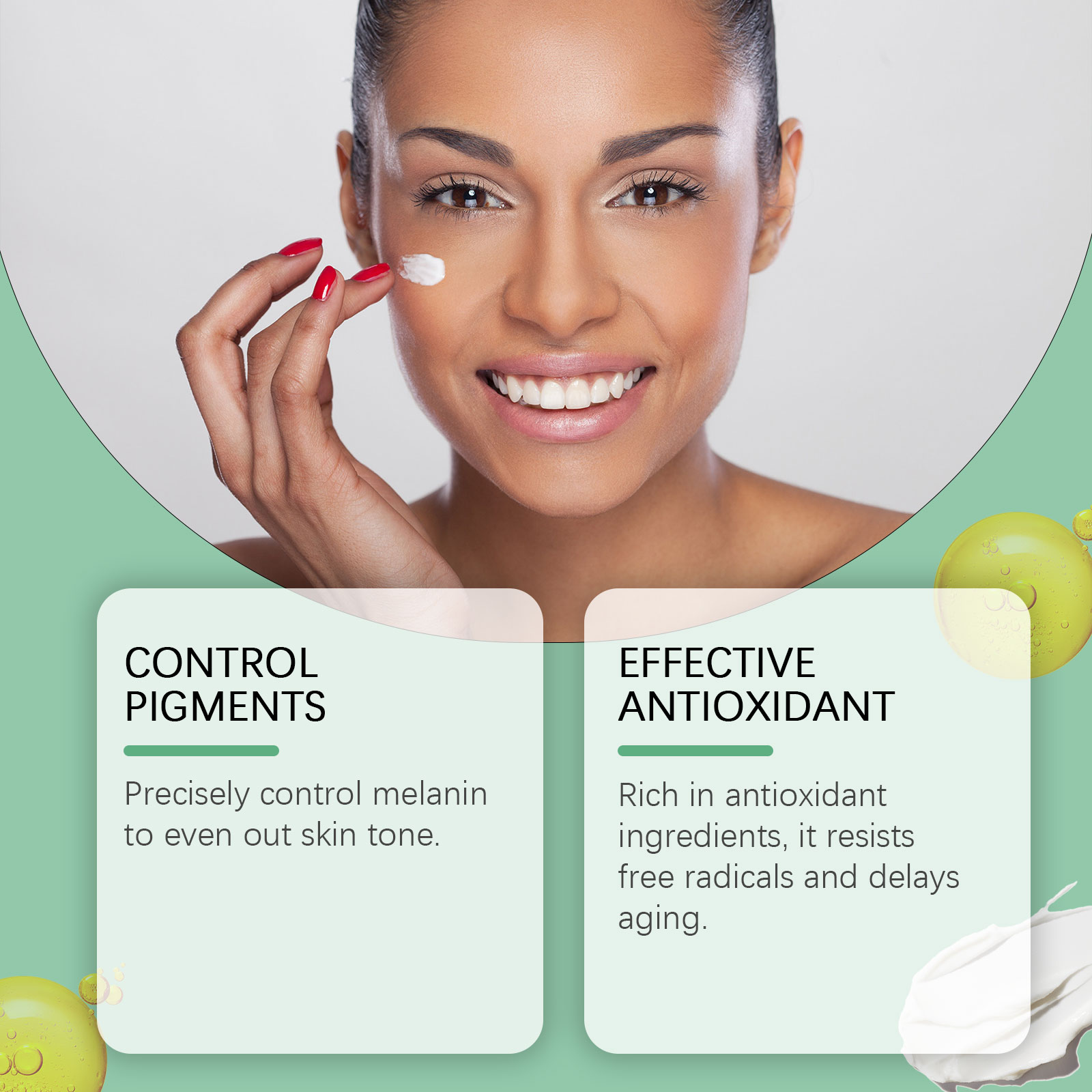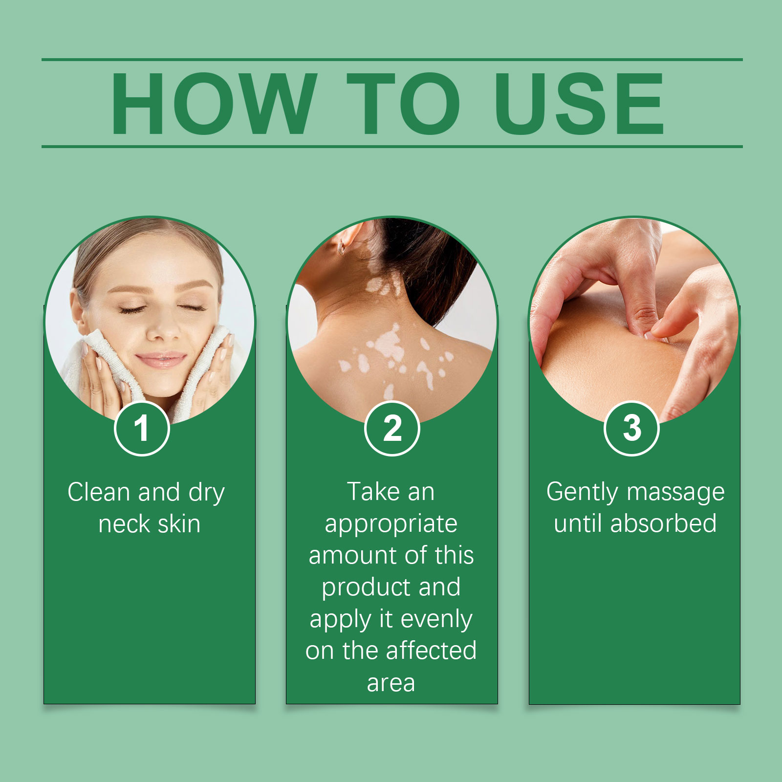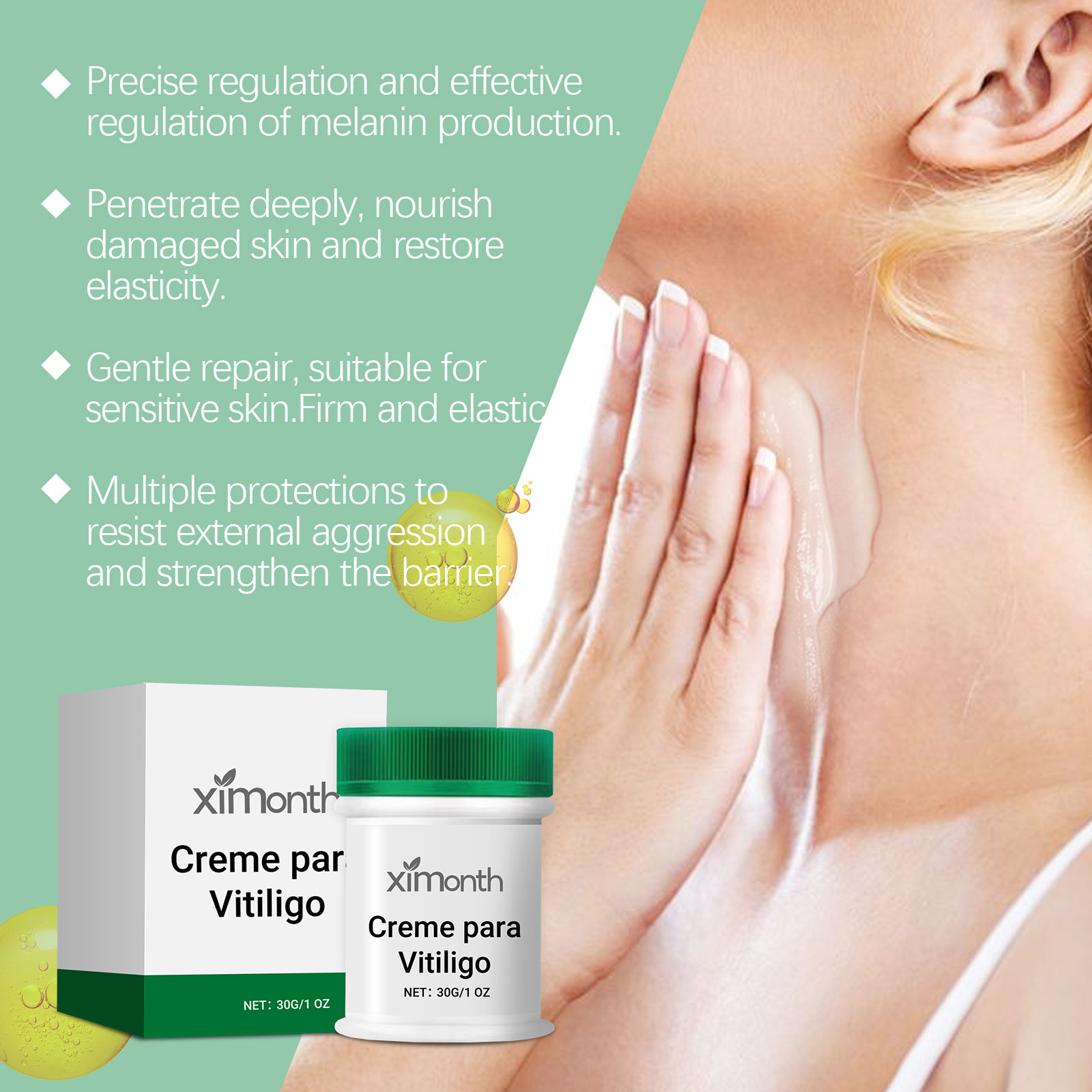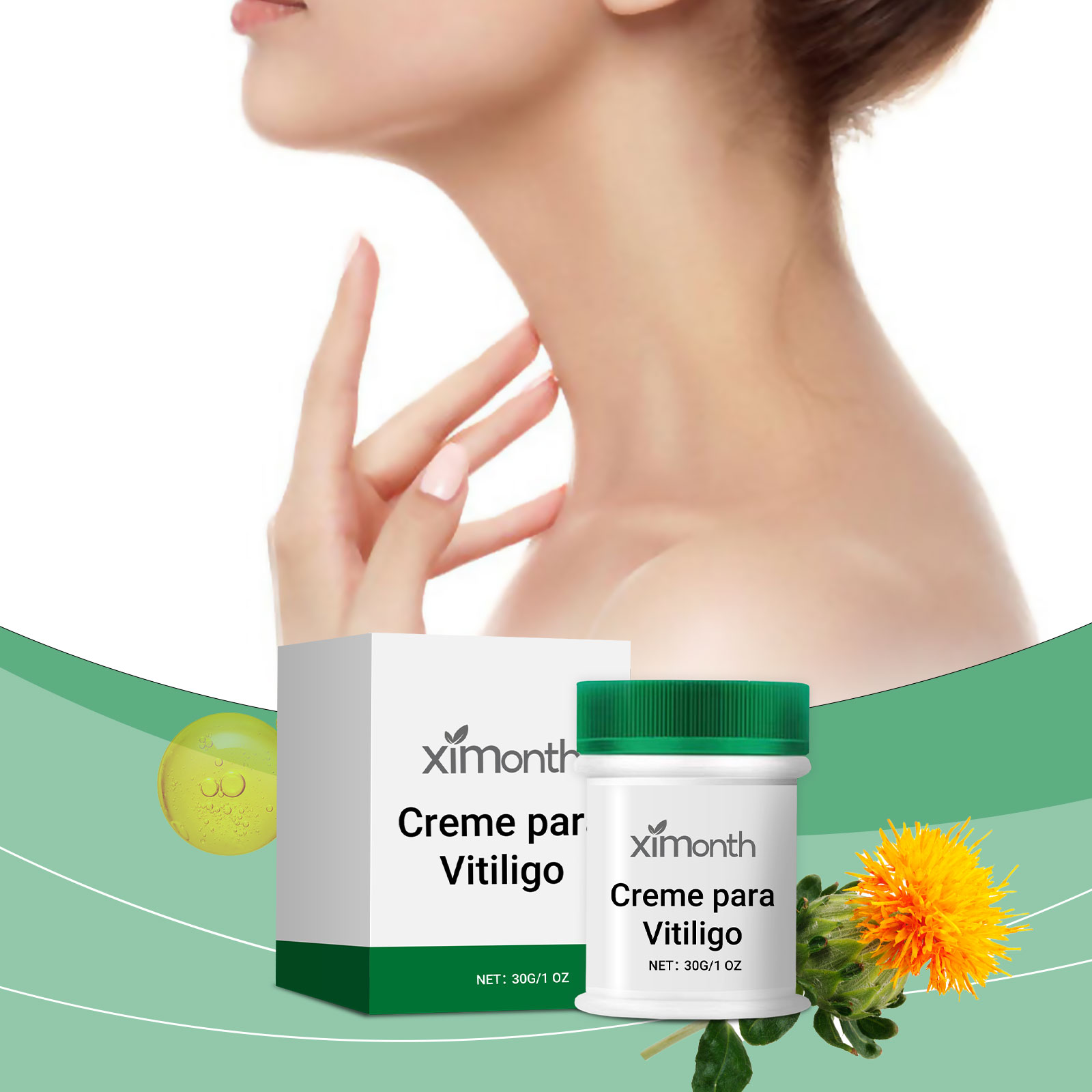 Our skin repair cream contains glycerin, psoralea fruit extract, safflower extract. It deeply hydrates and keeps skin supple. Strong moisturizing, improve dry skin, restore skin moisture. Soothe skin, relieve discomfort and boost metabolism. Its application method is simple: 1. Clean and dry the neck skin; 2. Apply appropriate amount of the product evenly to the affected area; 3. Gently massage until absorbed. Precise control of melanin, even skin tone. Rich in antioxidants, anti-free radicals, anti-aging.