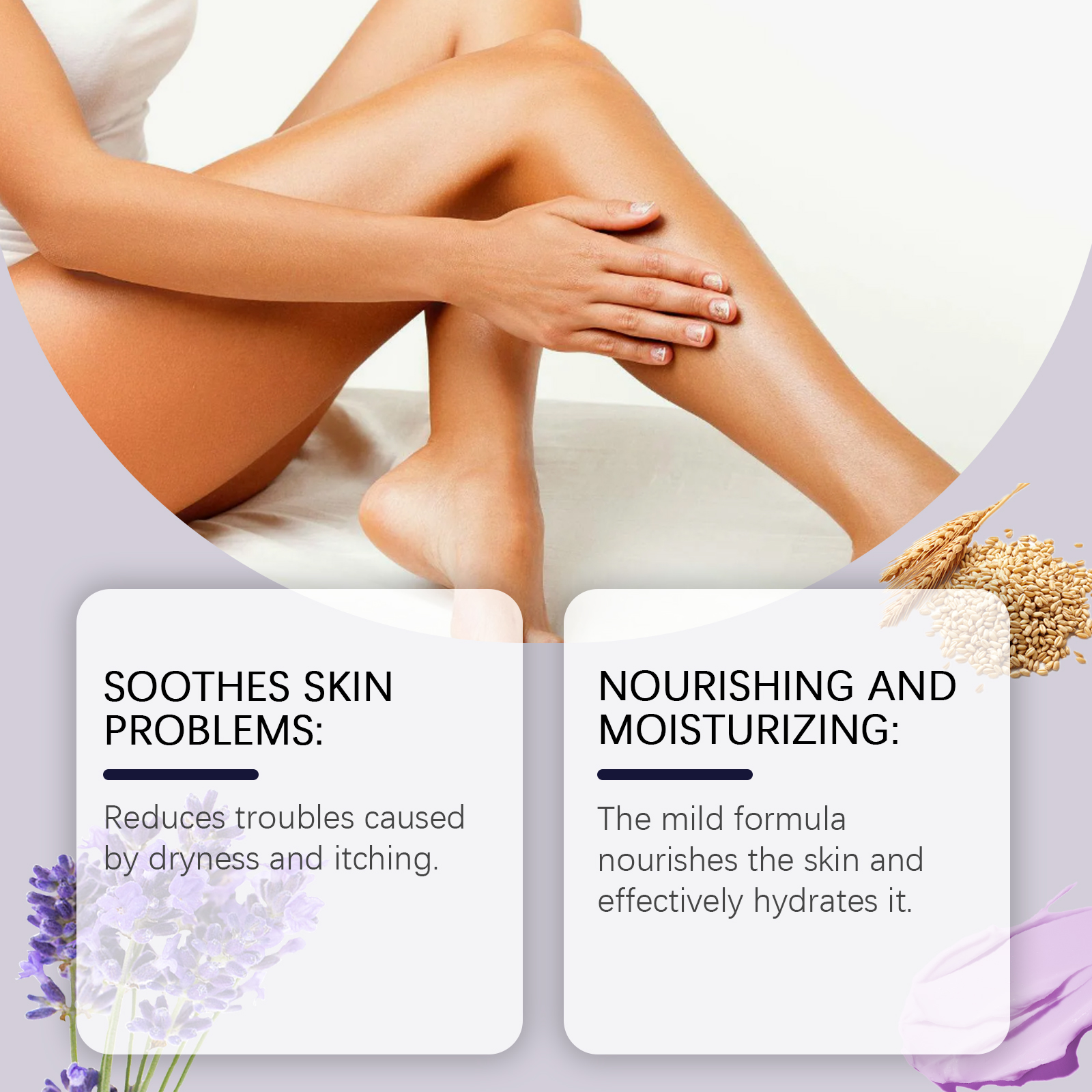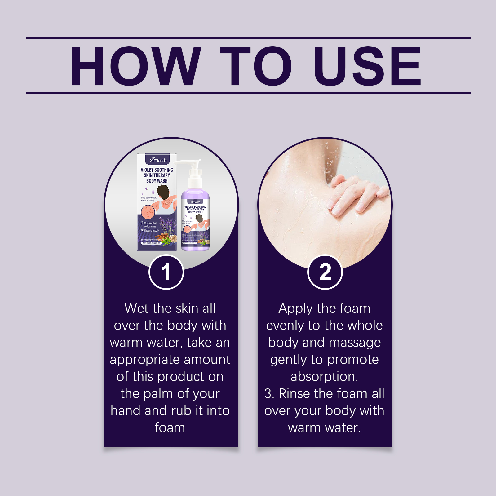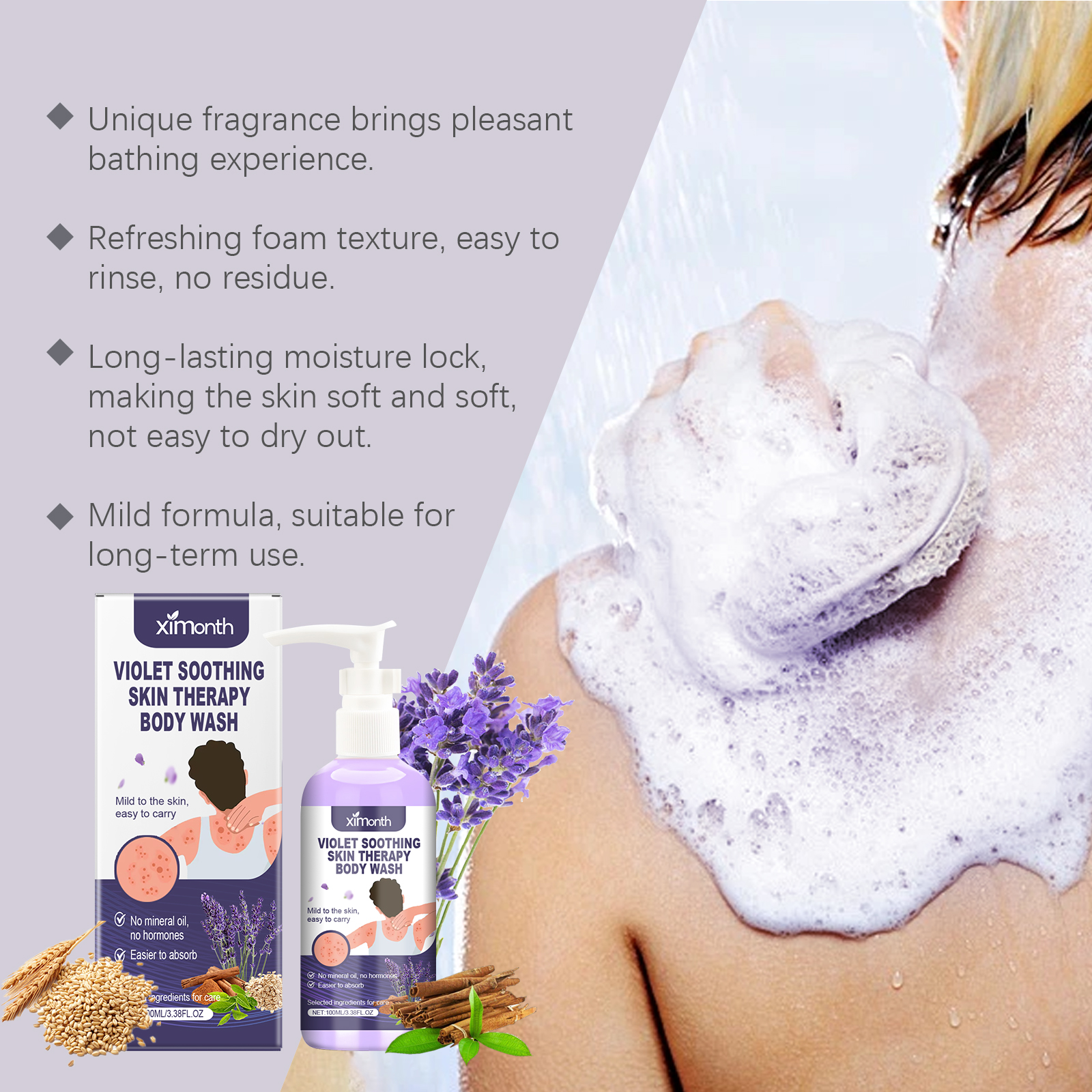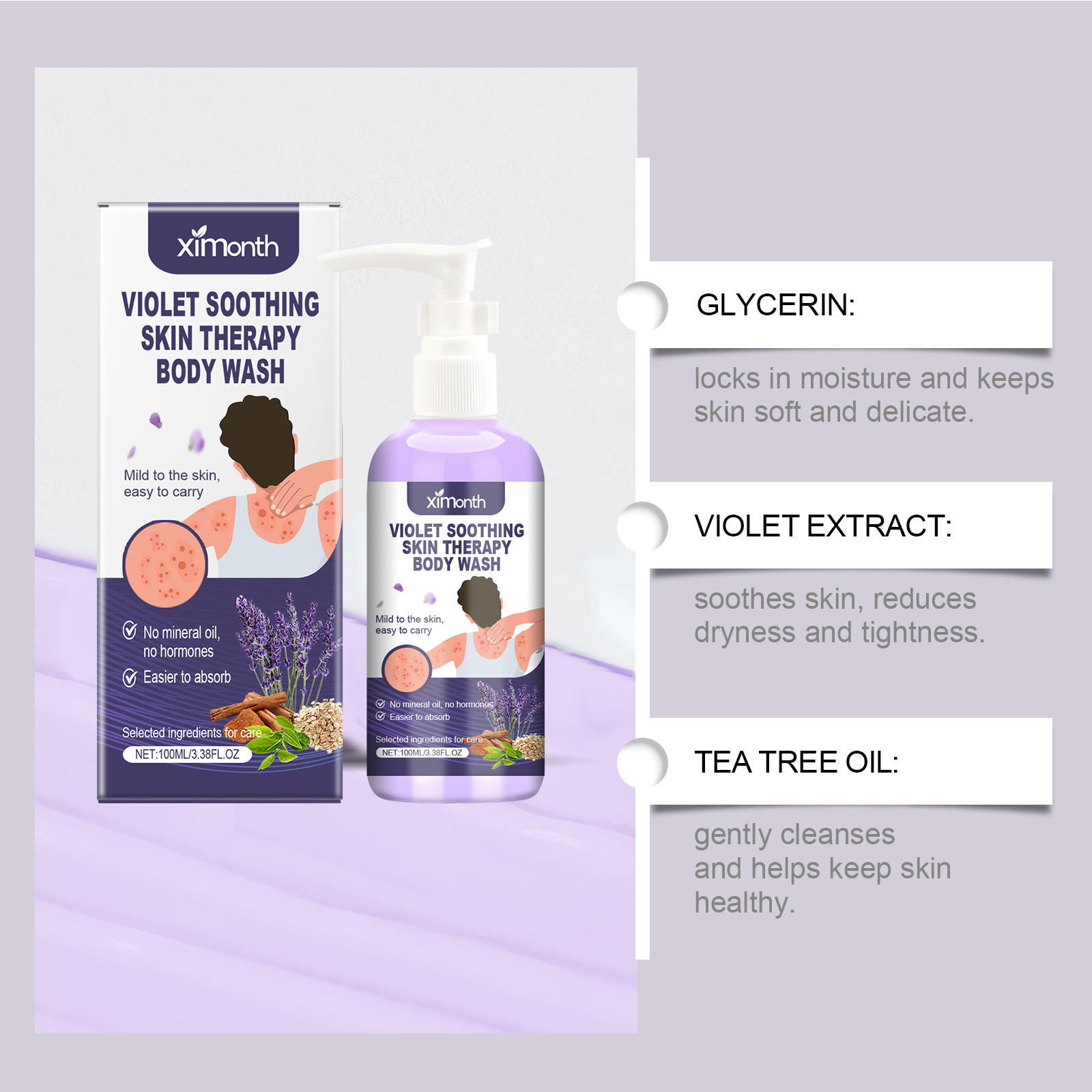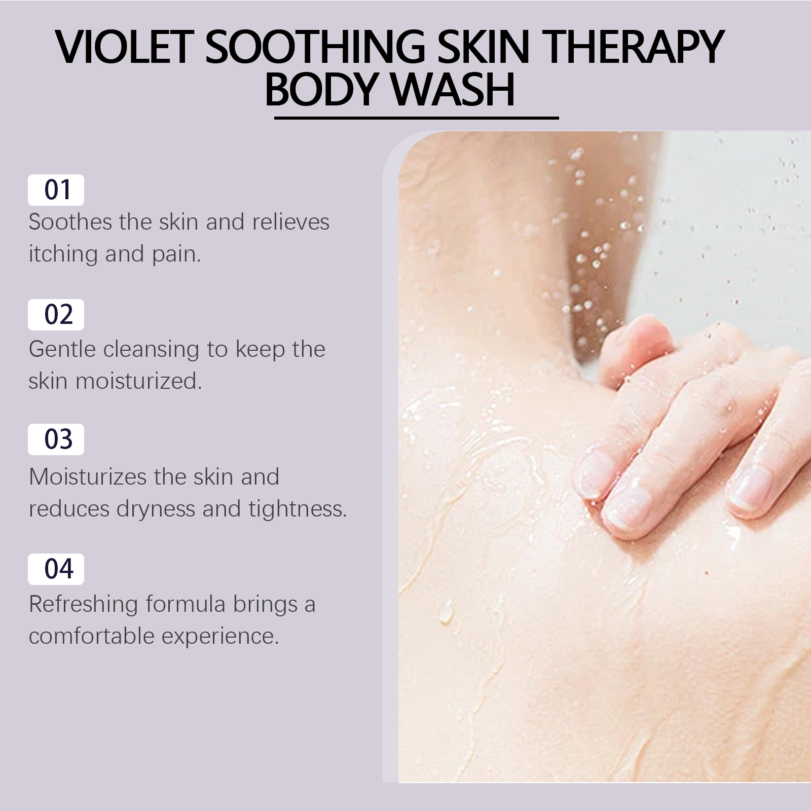Our Violet skin shower gel contains oats, tea tree oil, cinnamon. It locks in moisture and keeps skin soft and supple; Soothe skin, reduce dryness and tightness; Gently cleanses and helps keep skin healthy. Its use method is very simple: 1. Wet the whole skin with warm water, take appropriate amount of this product in the palm and rub into foam; 2. Evenly apply the foam to the whole body and gently massage to promote absorption. 3. Rinse the foam off your body with warm water. Reduce the annoyance caused by dryness and itching. Gentle formula nourishes skin and moisturizes effectively.
