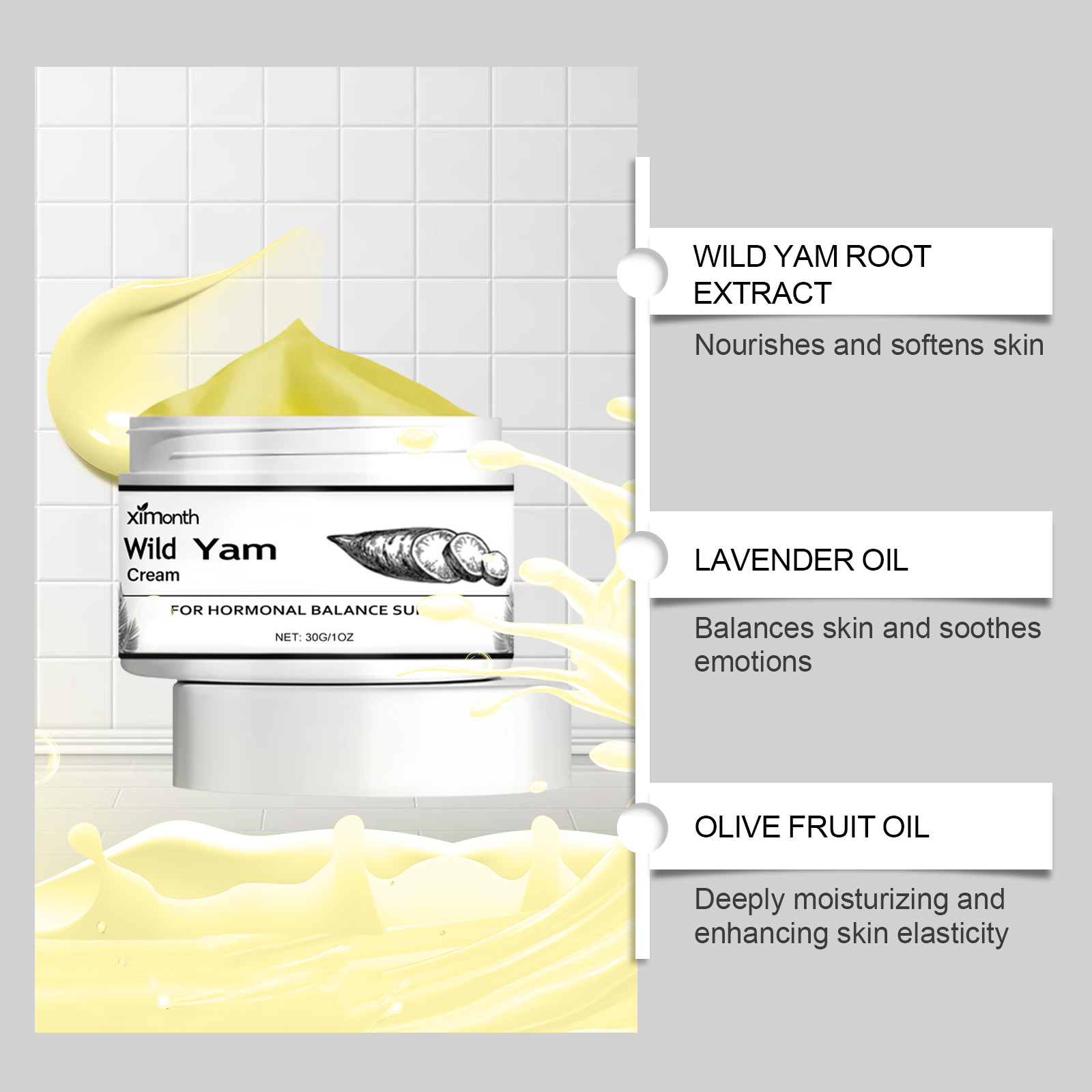 Ximonth Yam Cream For Women Nourishing Cream Moisturizing Skin Hydrating Massage Balancing Body Care Cream