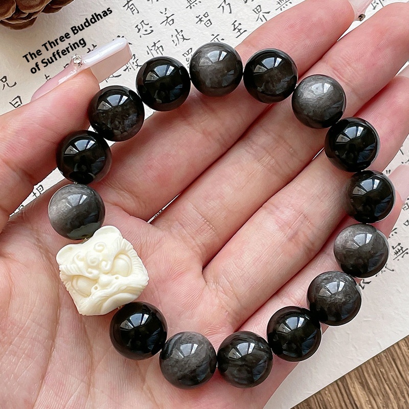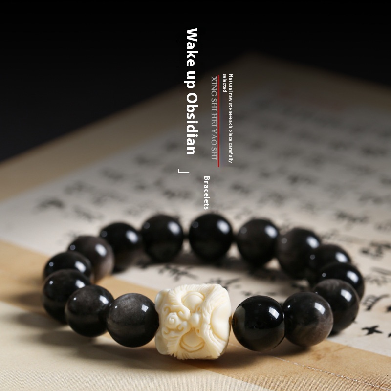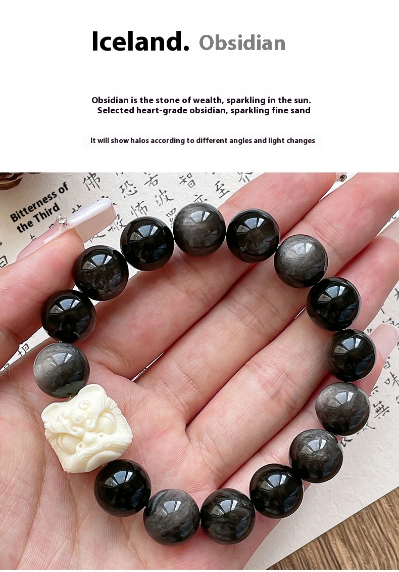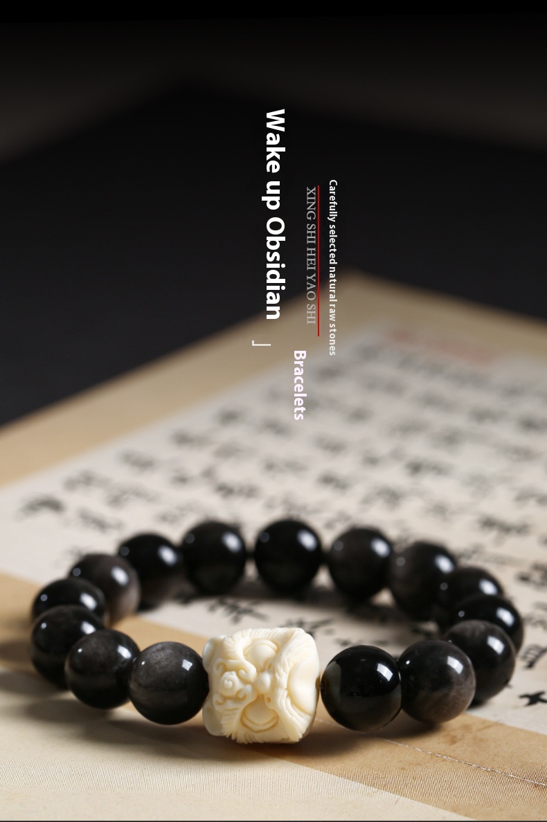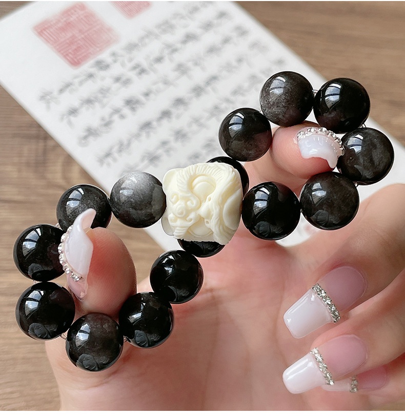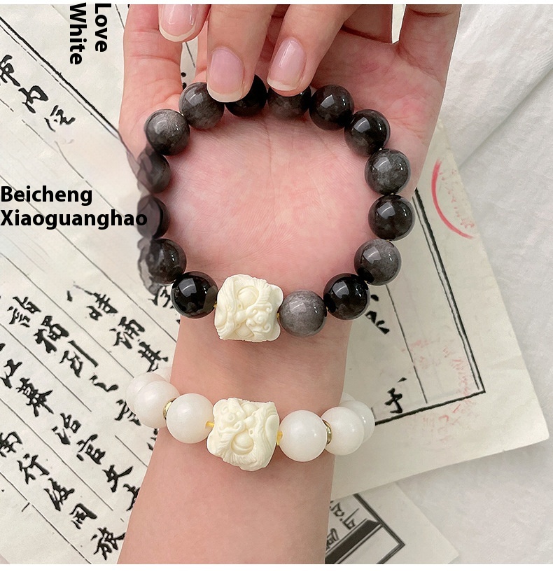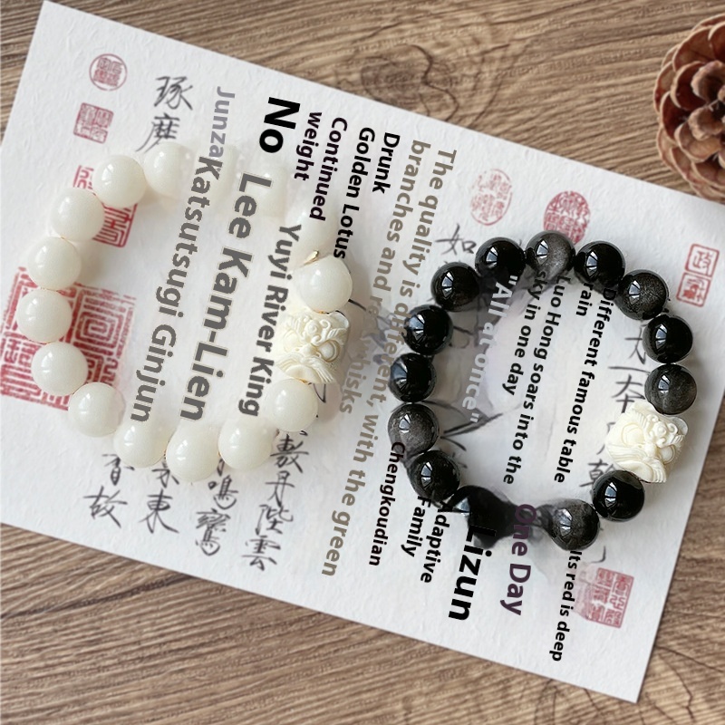 Color: Obsidian Xingshi single circle 12mm, white jade round beads Xingshi 12mm, obsidian Xingshi single circle 14mm, white jade round beads Xingshi 14mm