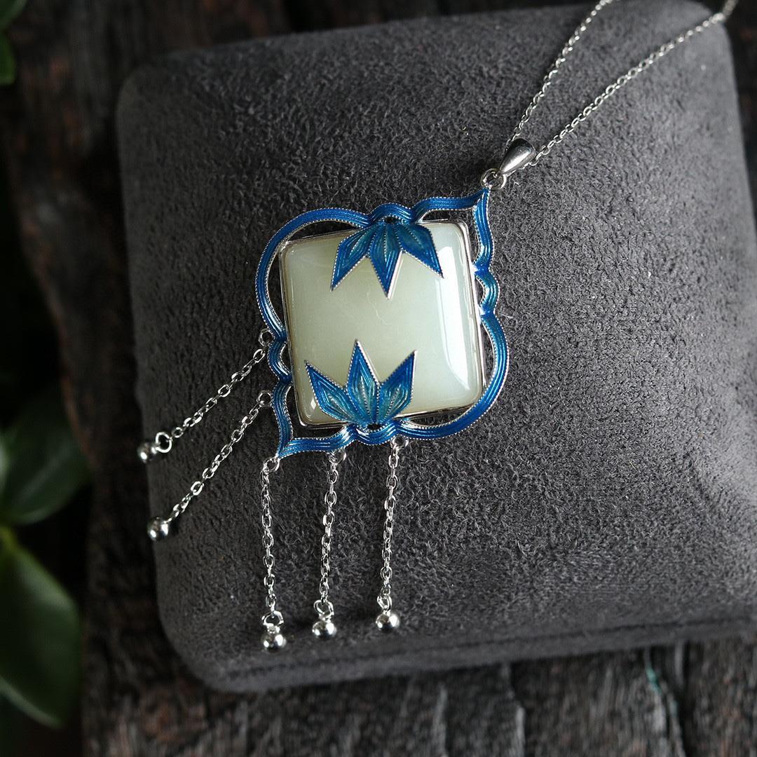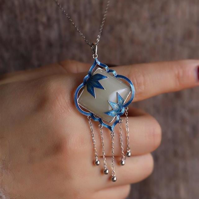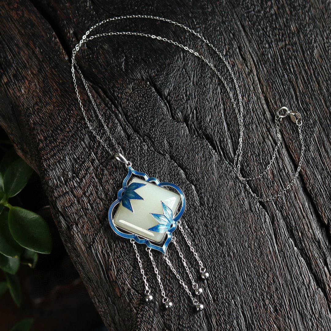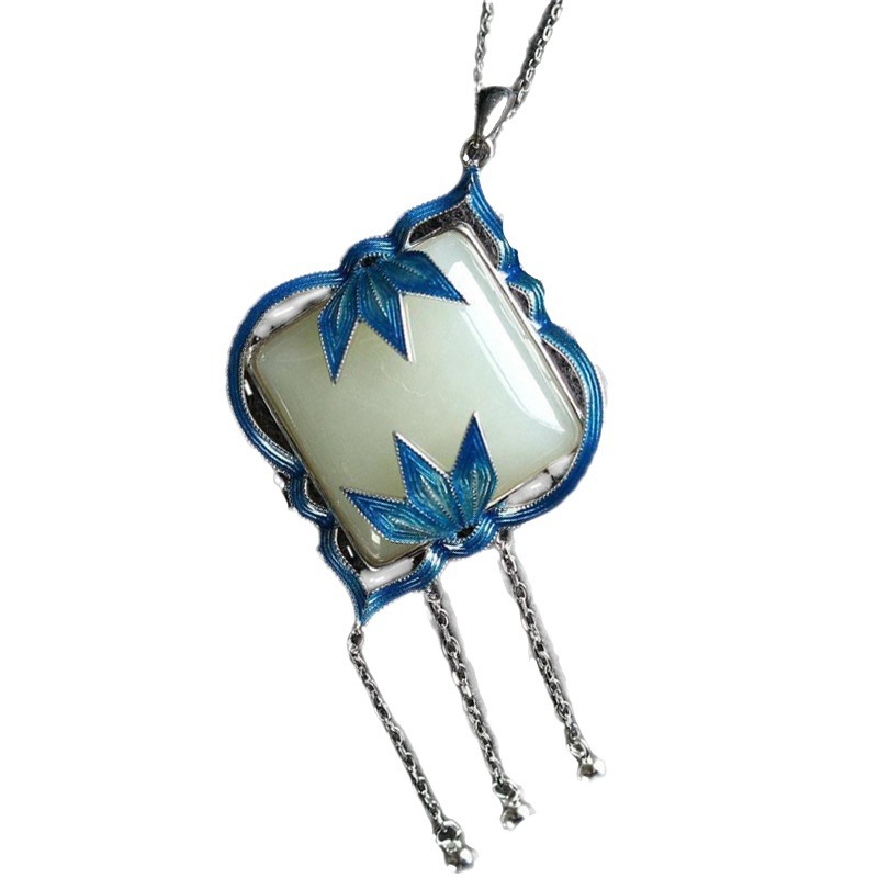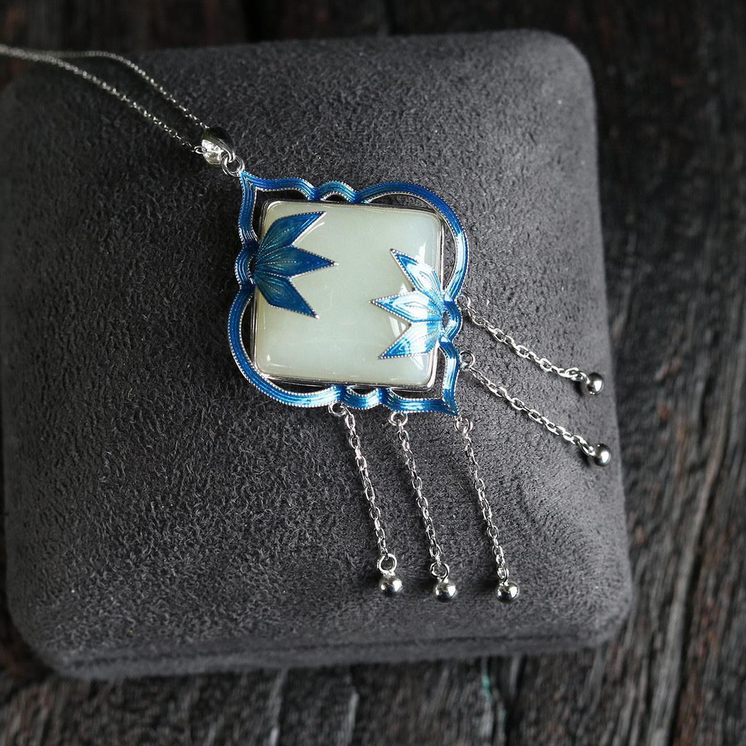 Color: white jade tassel clavicle chain silver (single pendant), white jade tassel clavicle chain silver (with 40 5cm necklace), gray jade tassel clavicle chain gold (single pendant, gray Jade tassel clavicle chain silver (with 40 5cm necklaces)