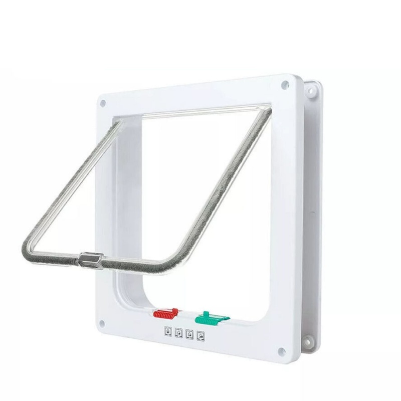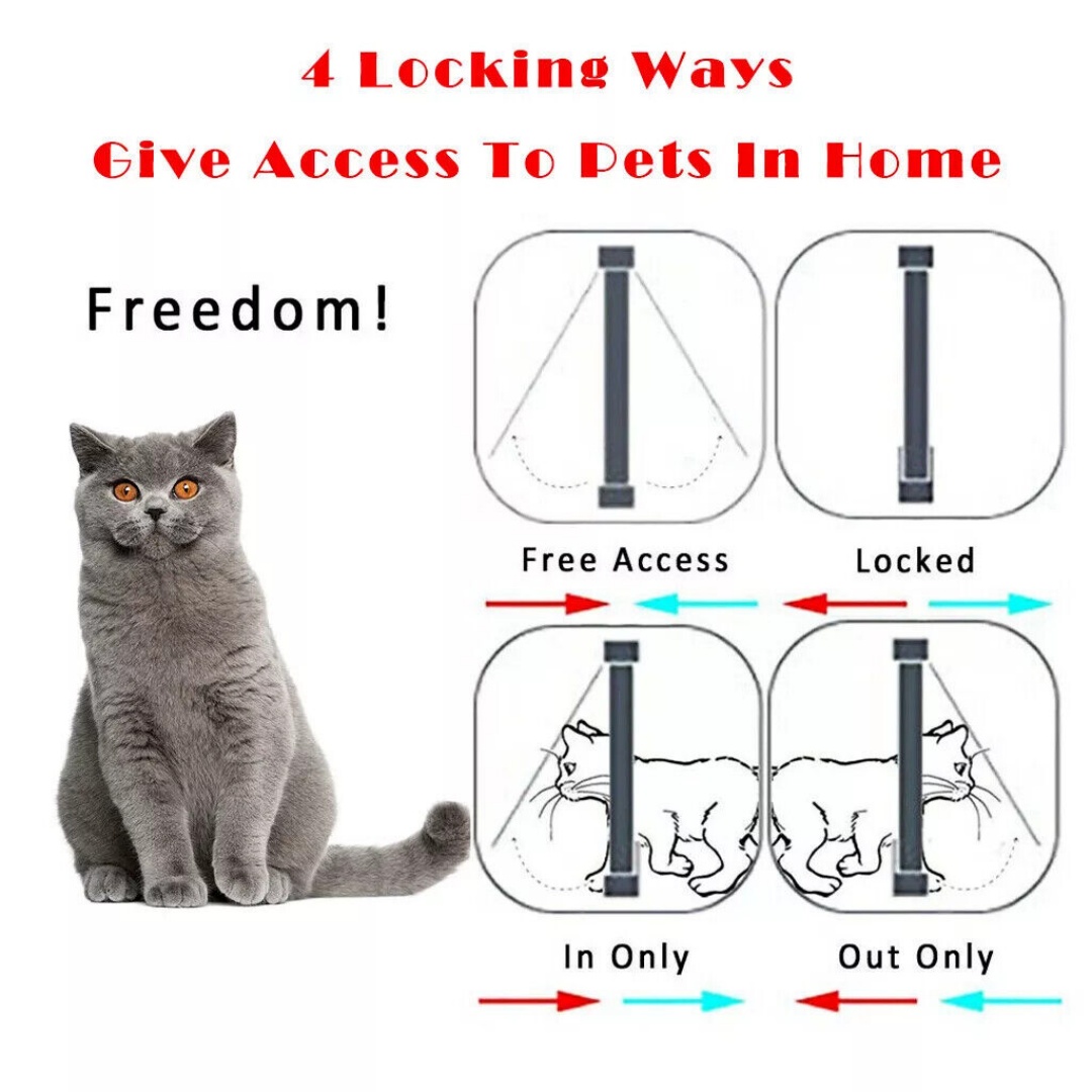 --- 4-Way Switch Mode: The pet door can be adjusted to 4 modes with switches labelled red and green: out only, in only, in and out, both in and out, and fully locked, making it easy to control pet access.
