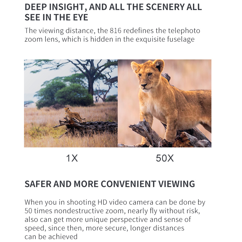 2 HD FPV flight: 4K / 720P HD with real-time transmission video, s port view switch: normal front lens, lower lens, image in image, split screen, t tilt angle camera adjustable