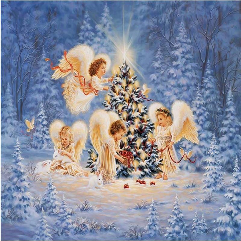 XXL - 5D Diamond Painting - Engel um den Weihnachtsbaum