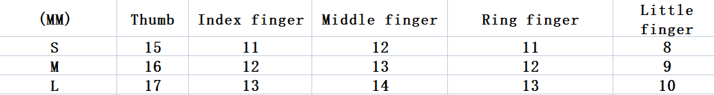Specifications: extra small xs, small size S, medium M, large L