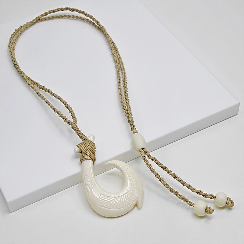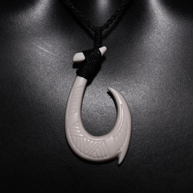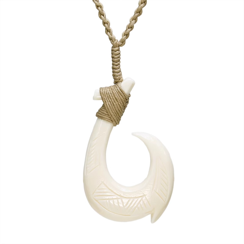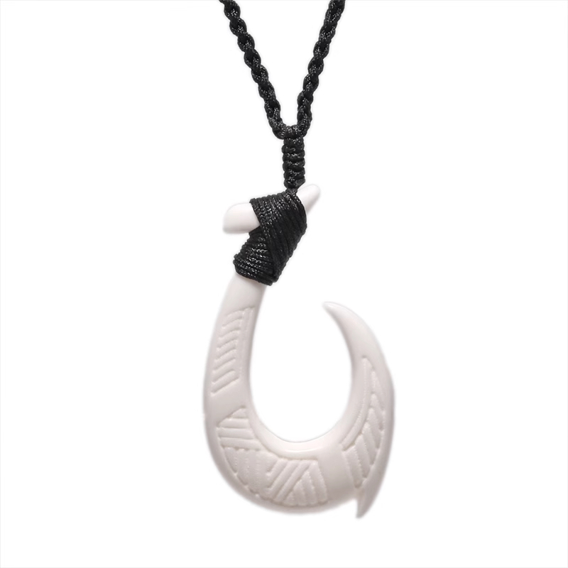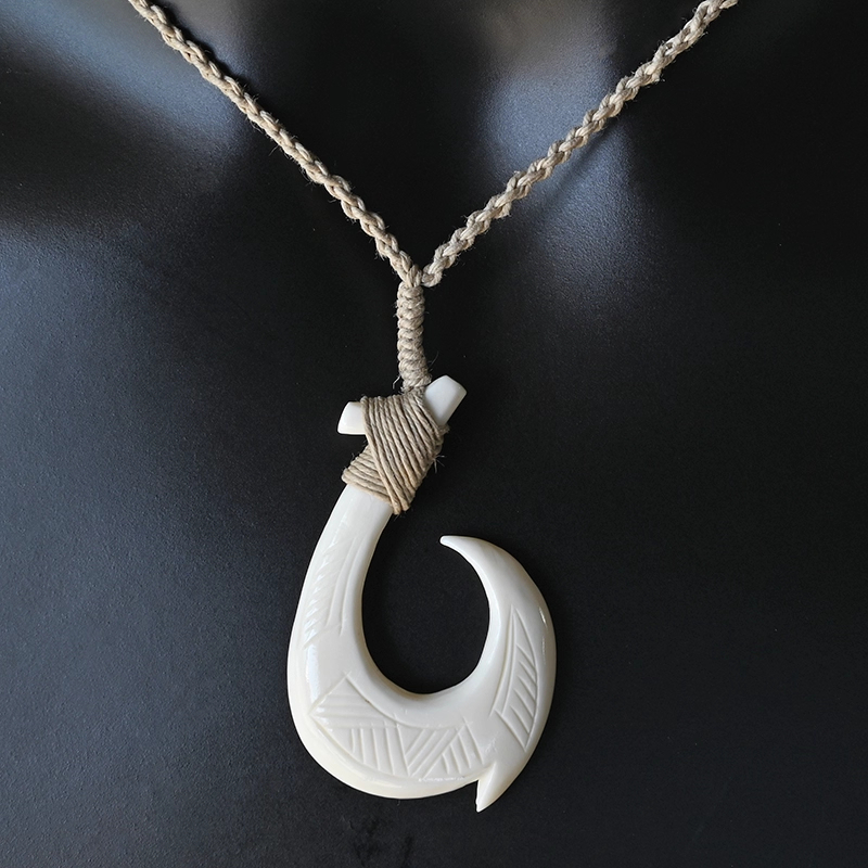 Yak Bone Carved Fishhook Brand Pendant Necklace