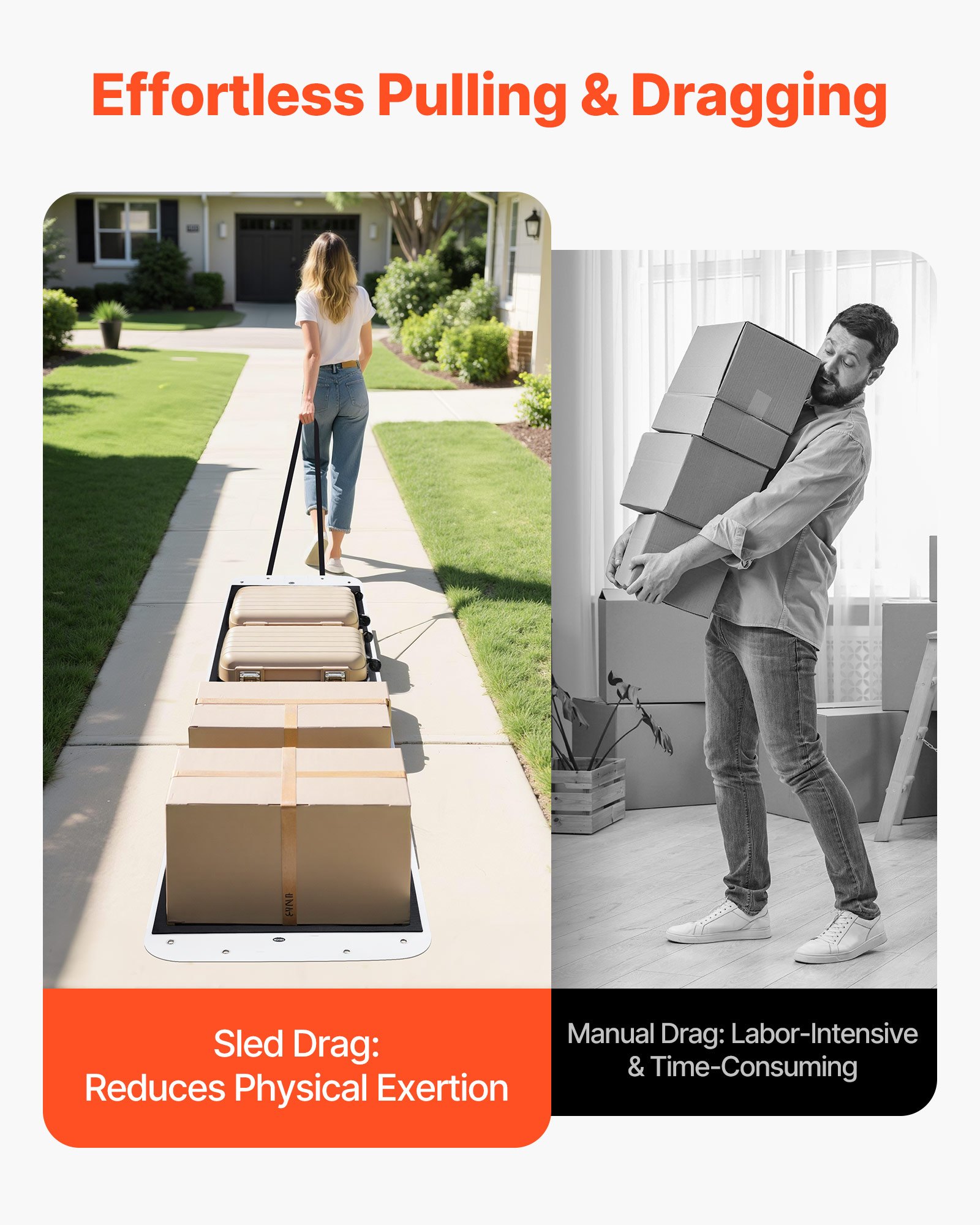 Effortless Towing: Equipped with two high-strength webbing straps, the utility sled offers strong pulling power, ensuring easy movement of heavy items without effort, saving time and energy during transportation.