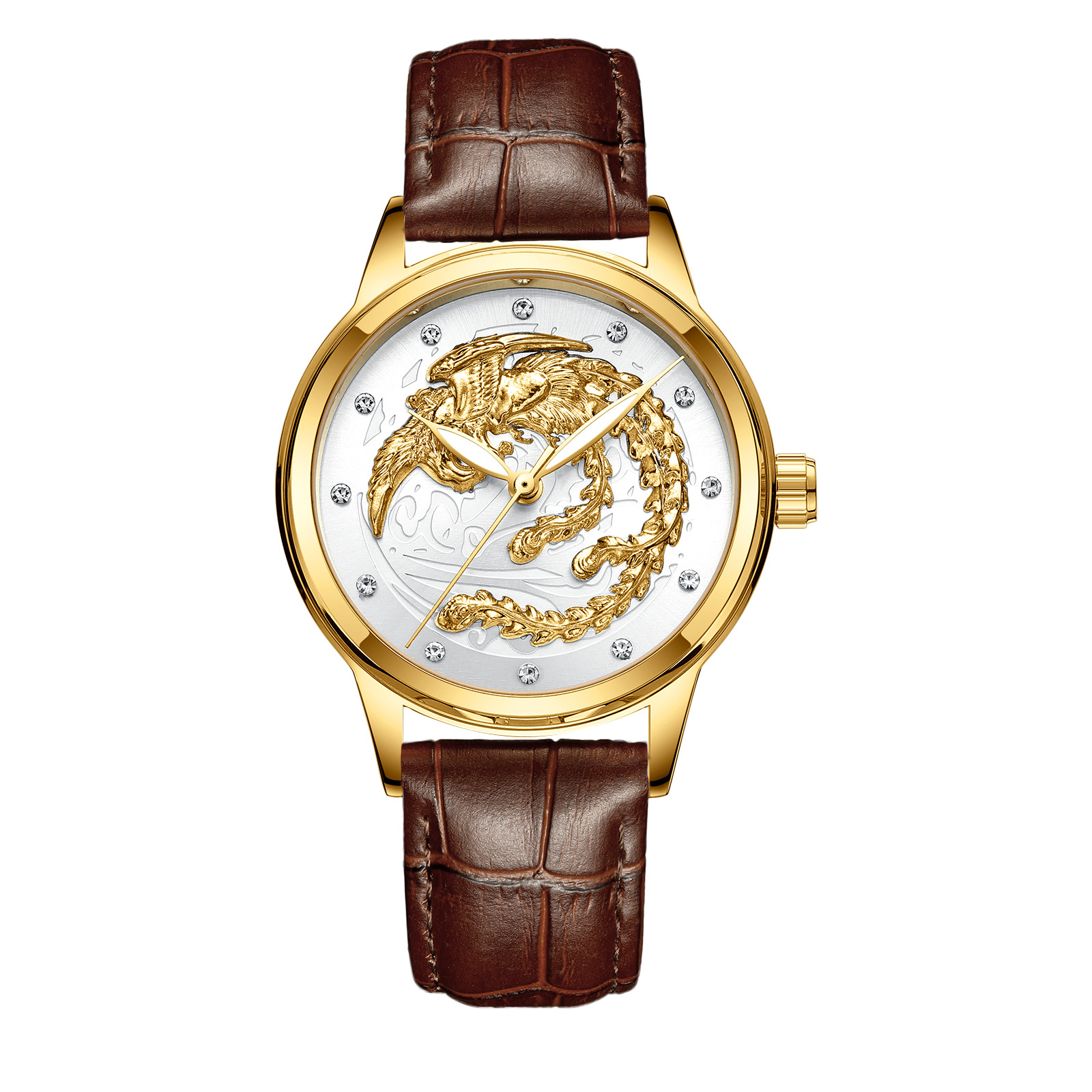 N: [Phoenix watch] brown leather-full gold-gold surface