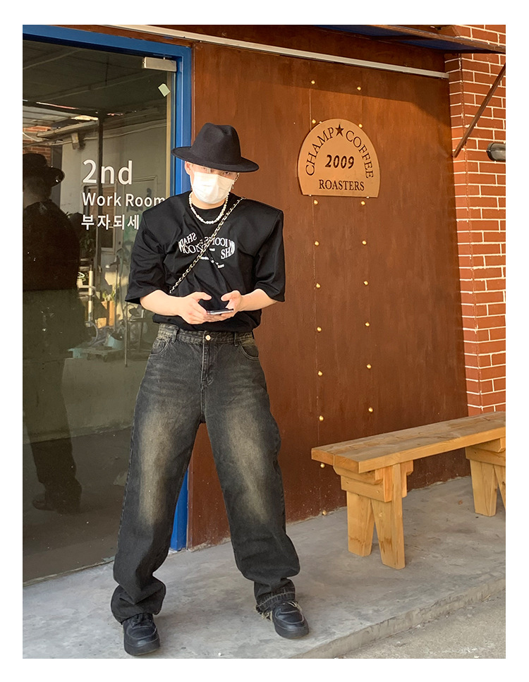 Yellow Mud Men's And Women's Loose American Retro Jeans