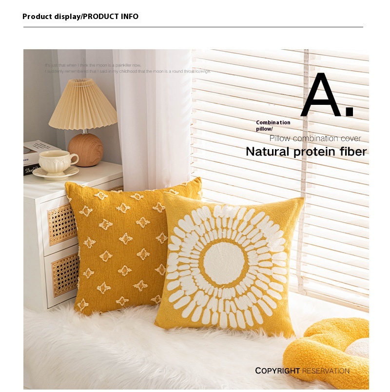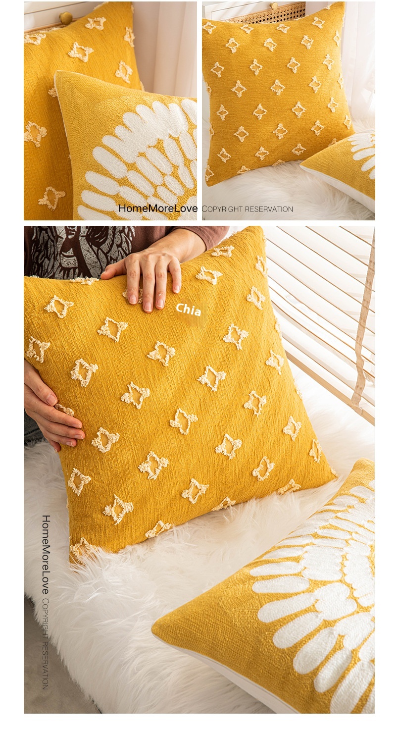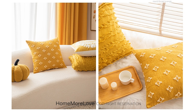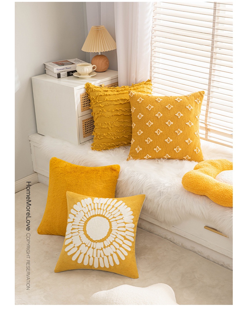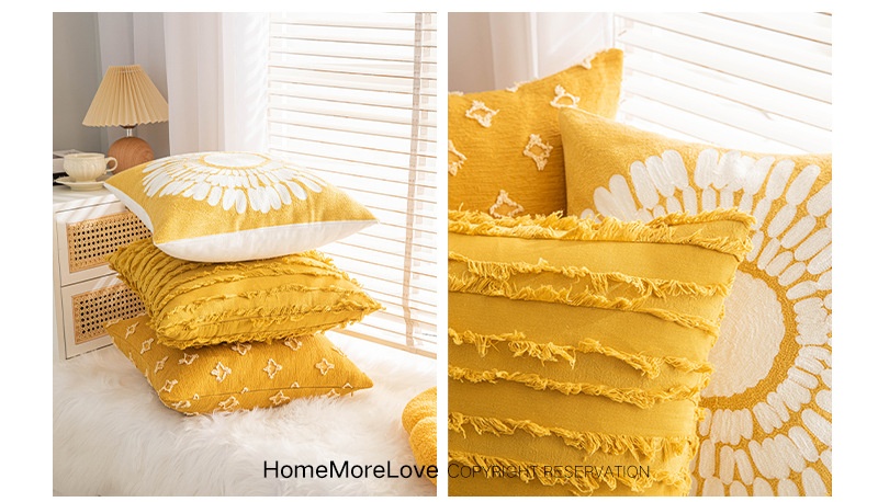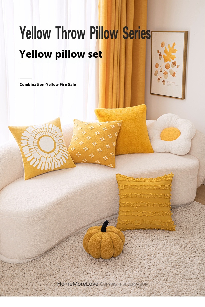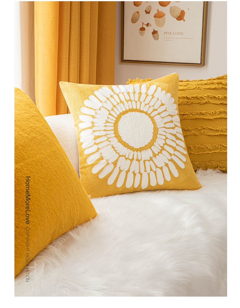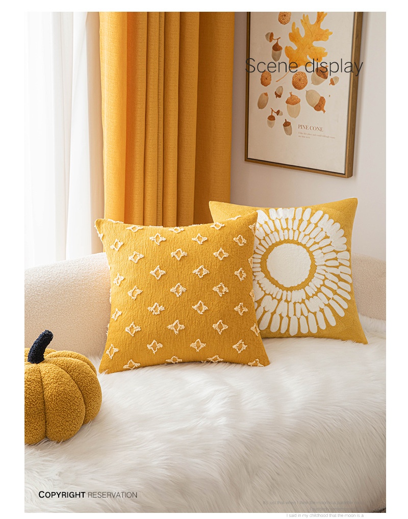 Color: yellow pillowcase 4 pack, mustard yellow, cotton and linen cut flower turmeric, turmeric Little Star, yellow little Daisy