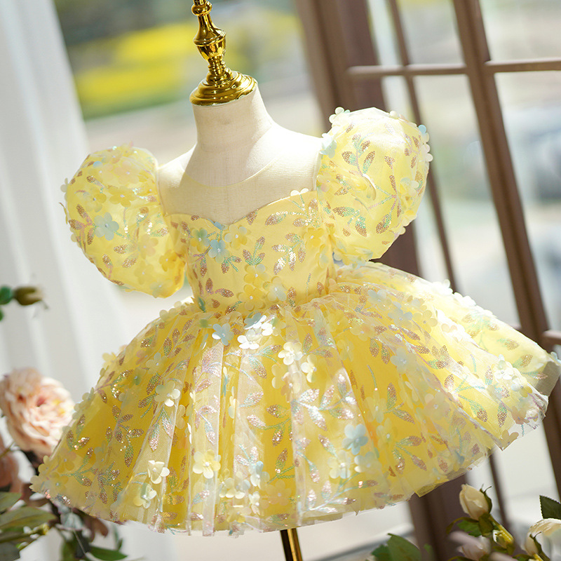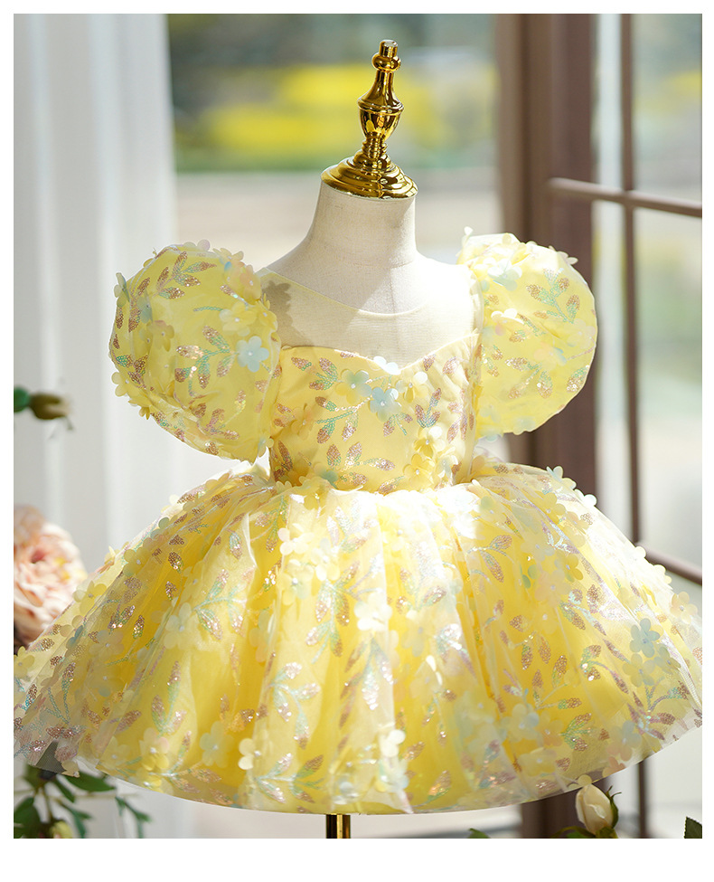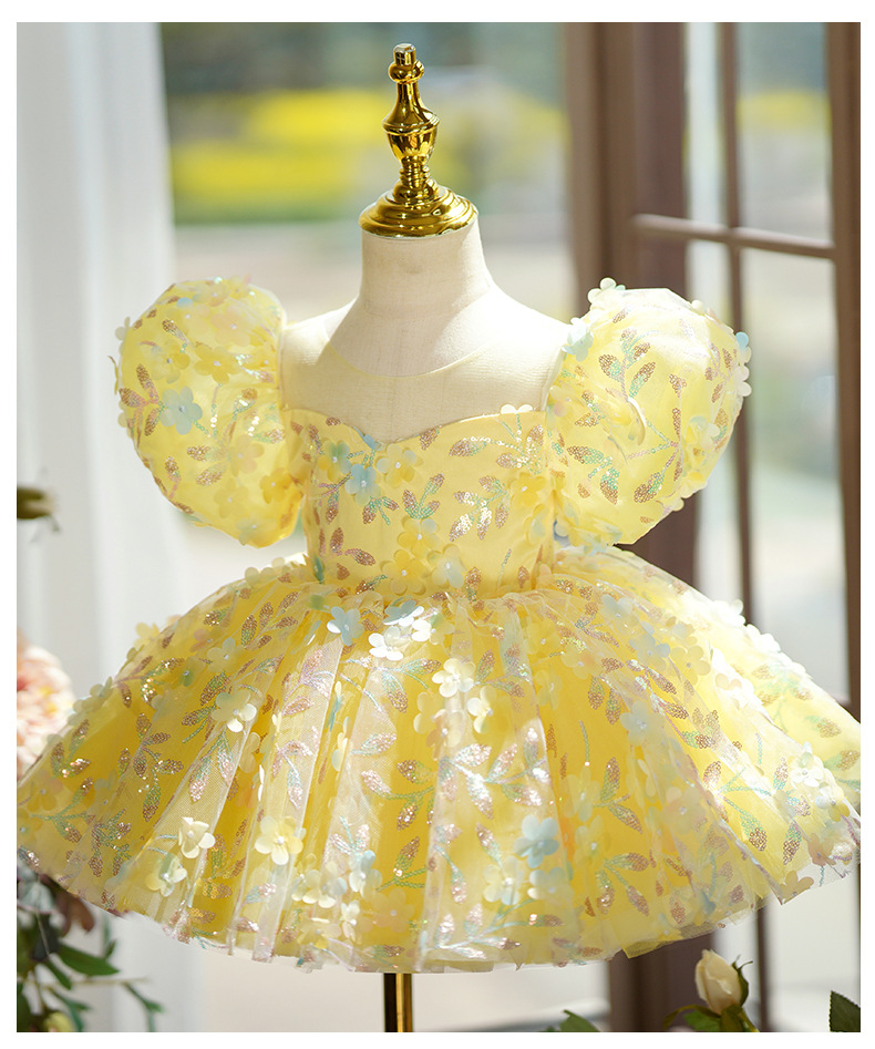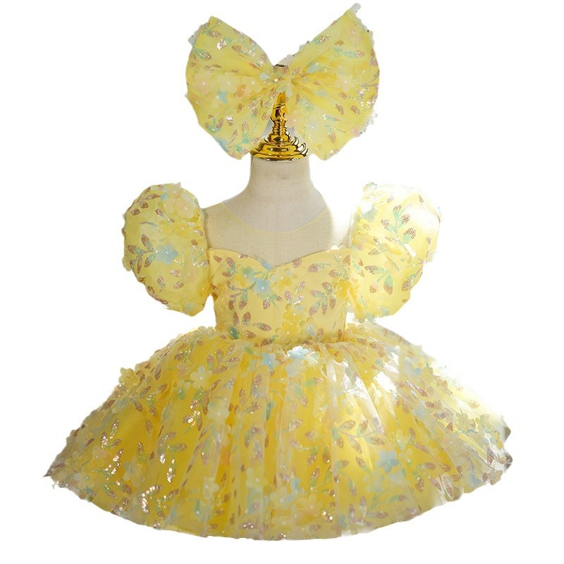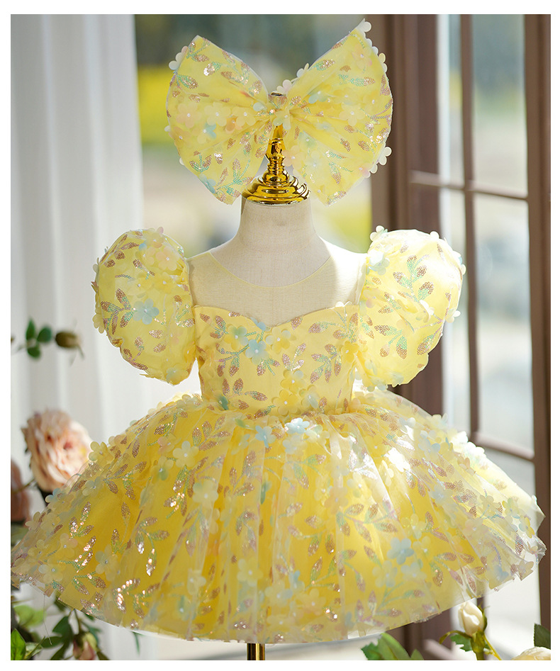 Yellow Puffy Gauze Princess Dress Children's Birthday Catwalk Performance Piano Performance