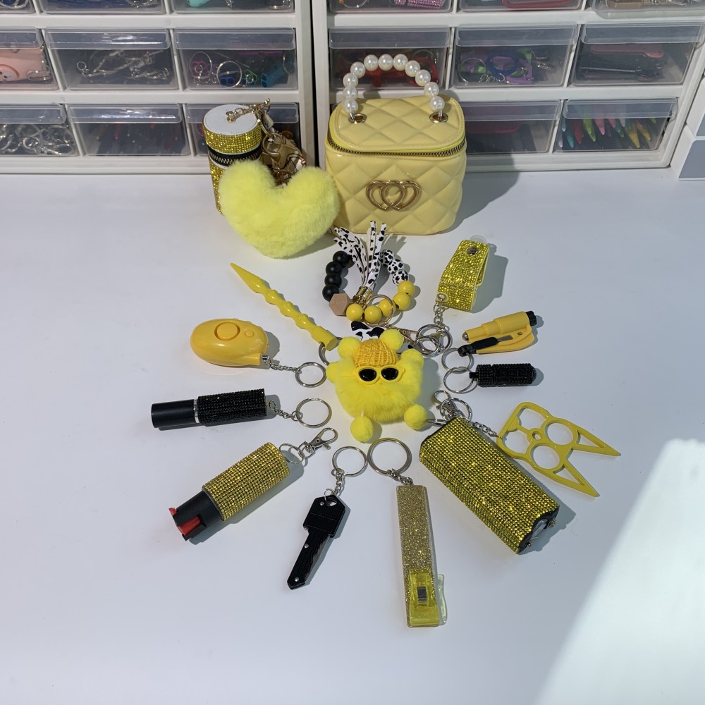 Yellow Shiny Lightning Keychain 16pcs Keychain Set