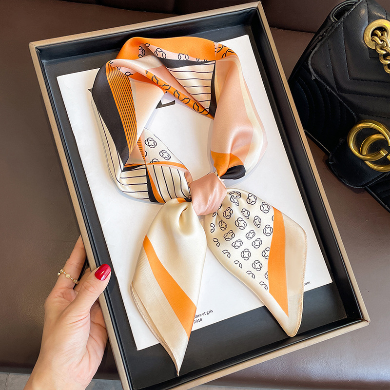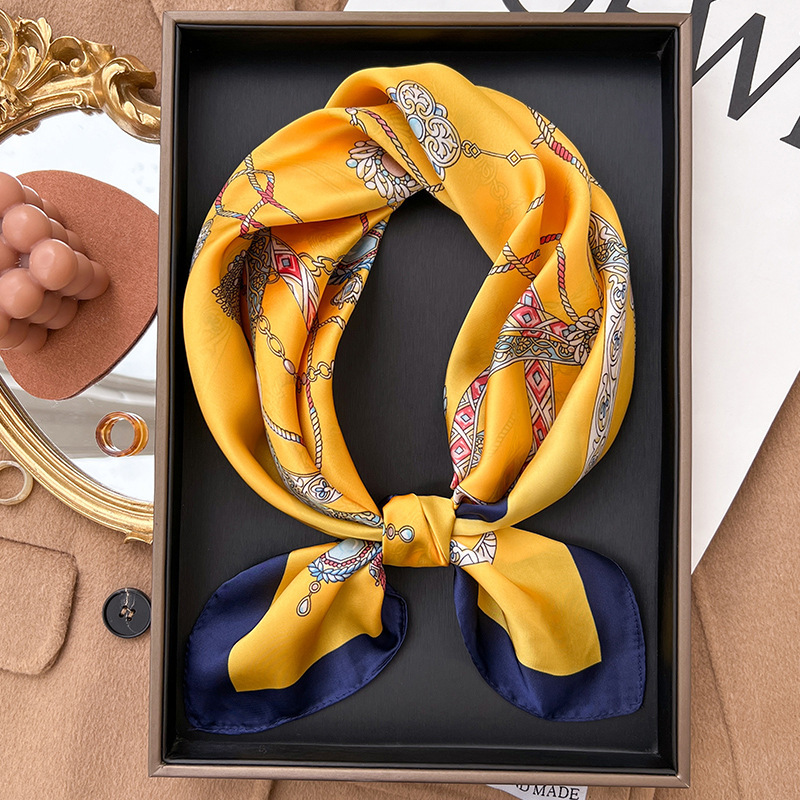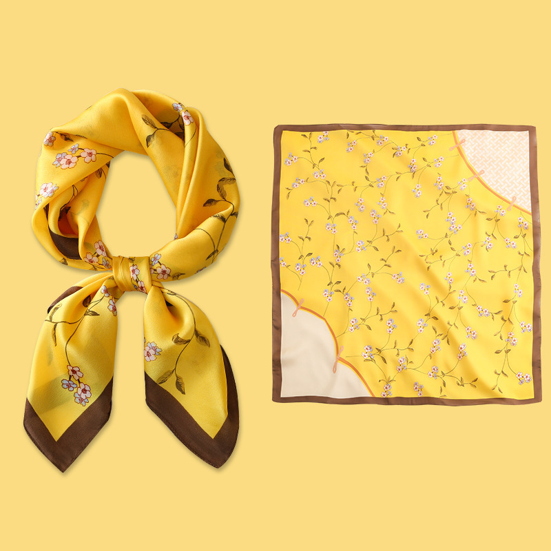 Yellow Small Square Silk Scarf For Women