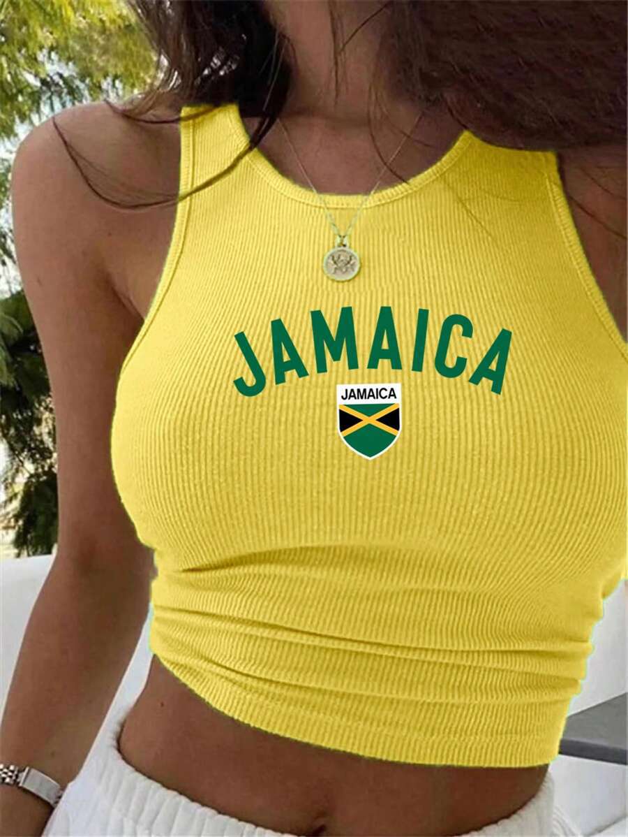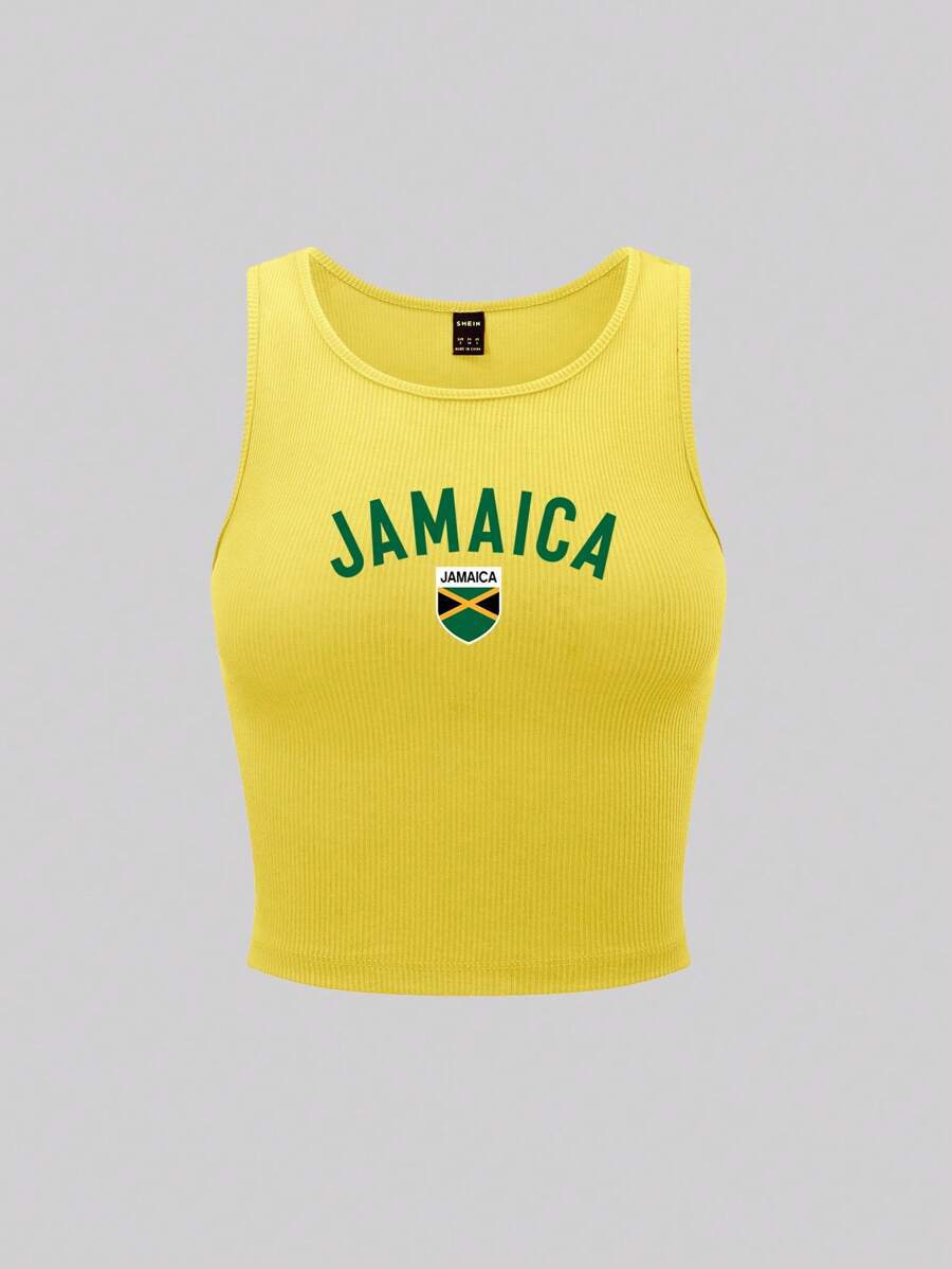 Yellow Vest Printed T-shirt Women's Top
