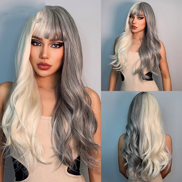 Wig hairstyle: long curly hair with bangs