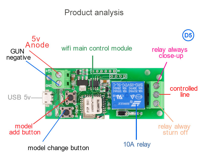 Features: stupid wifi control module, without programming, only needs to download an APP and link to WIFI to control its own cloud. As long as the module is connected to WIFI, the mobile phone can be controlled anywhere in the country.
