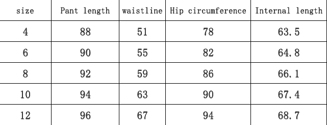 Size: 4,6,8,10,12