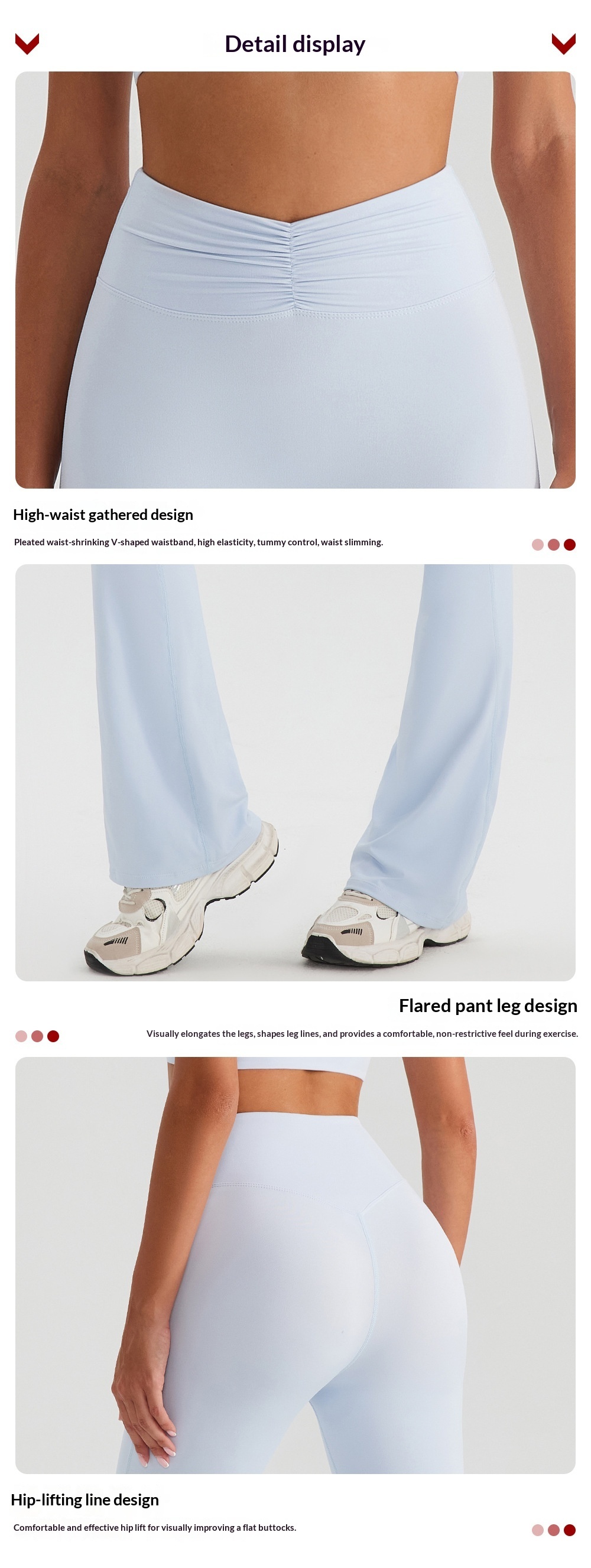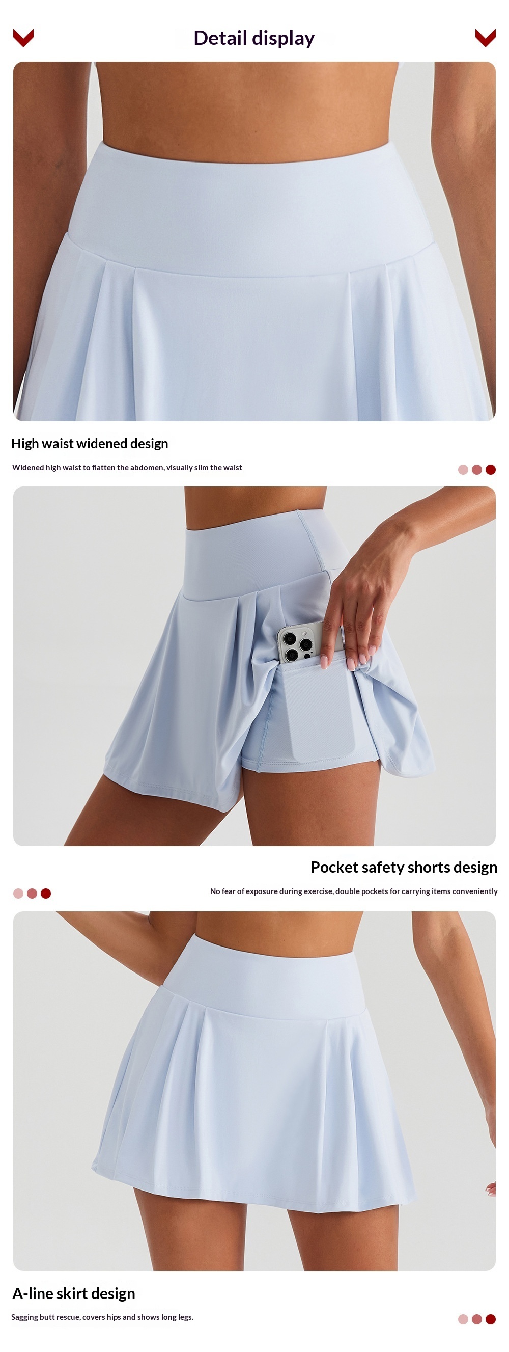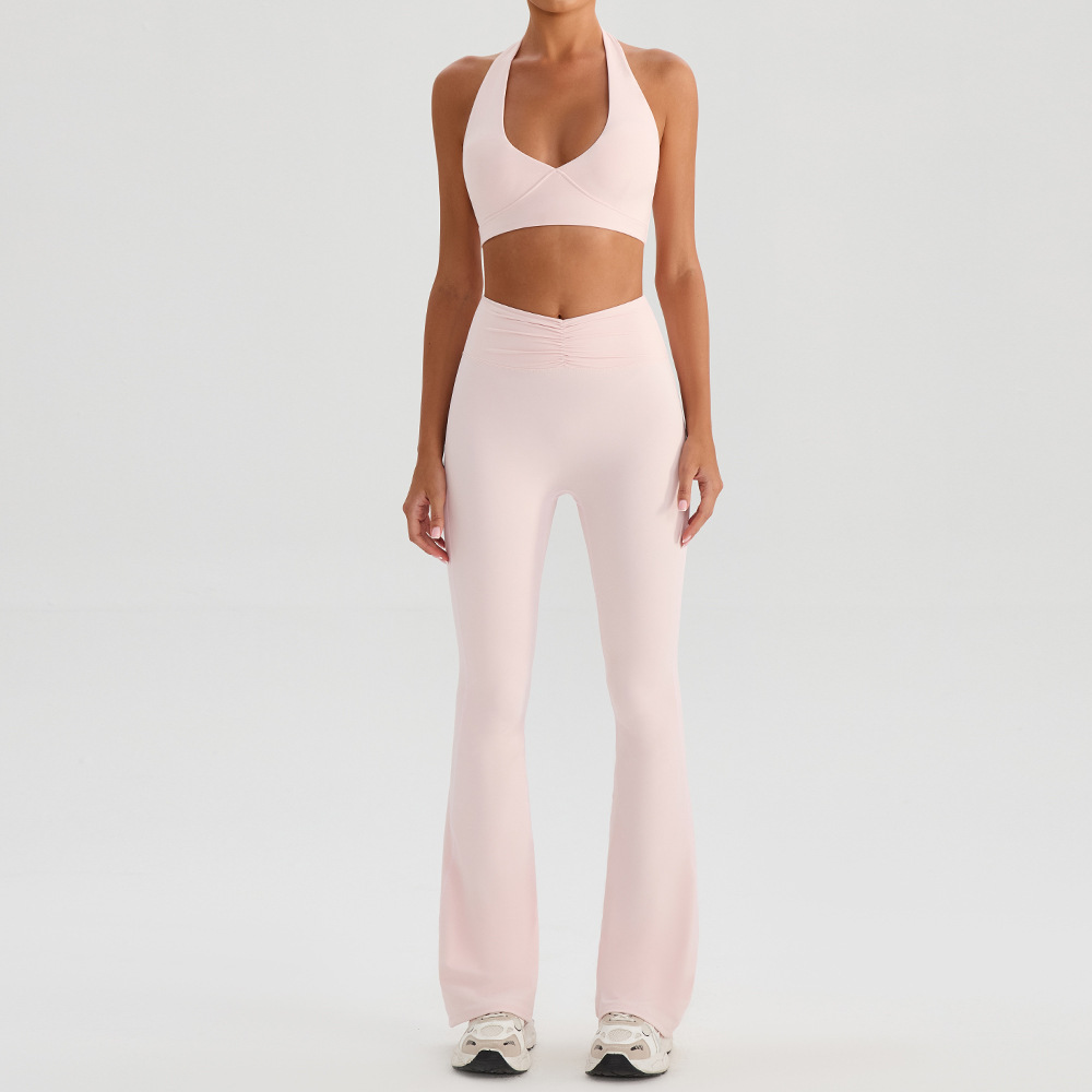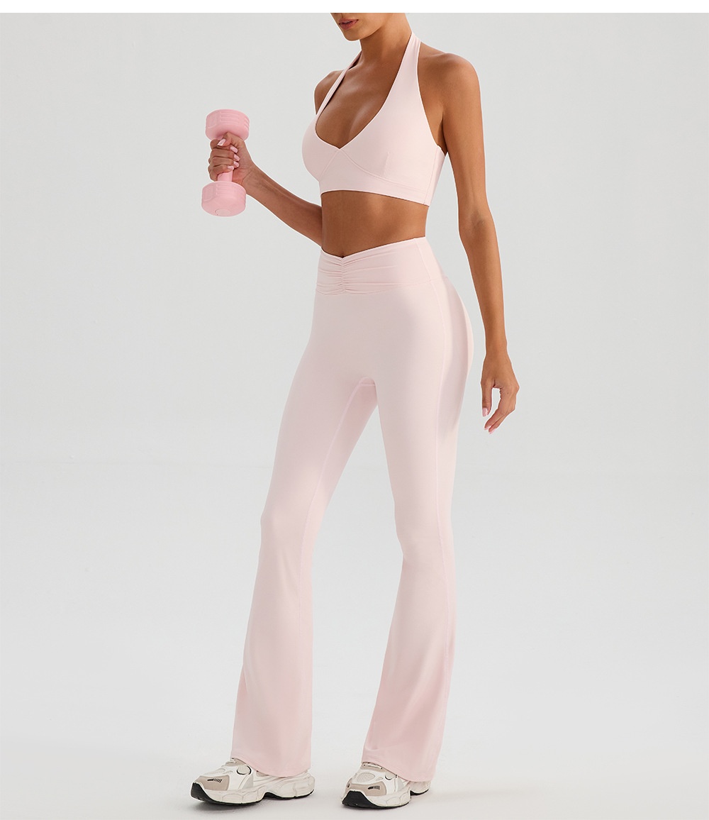 Color: dark pink: bra+bell bottom pants, cherry blossom pink: bra+bell bottom pants, apricot: bra+bell bottom pants, cloud blue: bra+bell bottom pants, black: bra+bell bottom pants; Deep pink: bra+shorts, apricot: bra+shorts, cherry blossom pink: bra+shorts, cloud blue: bra+shorts, black: bra+shorts; Deep pink: bra+skirt, cherry blossom pink: bra+skirt, apricot: bra+skirt, cloud blue: bra+skirt, black: bra+skirt.