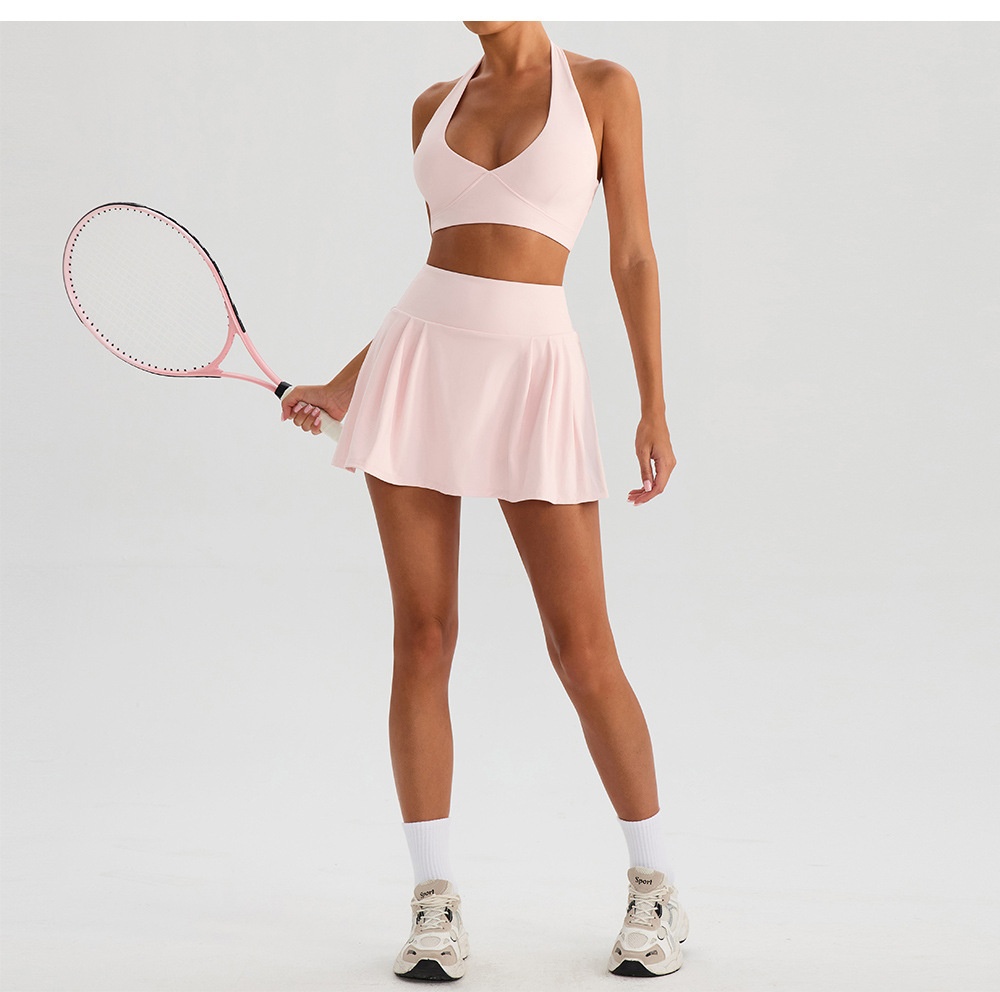 Yoga Sports Halter Bra And Tennis Skirt Two-Piece Set Outdoor Running Fitness Outfit Long And Short Pants Set