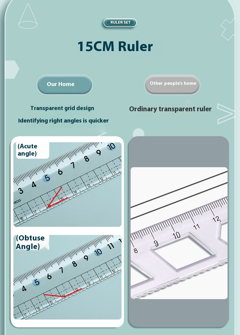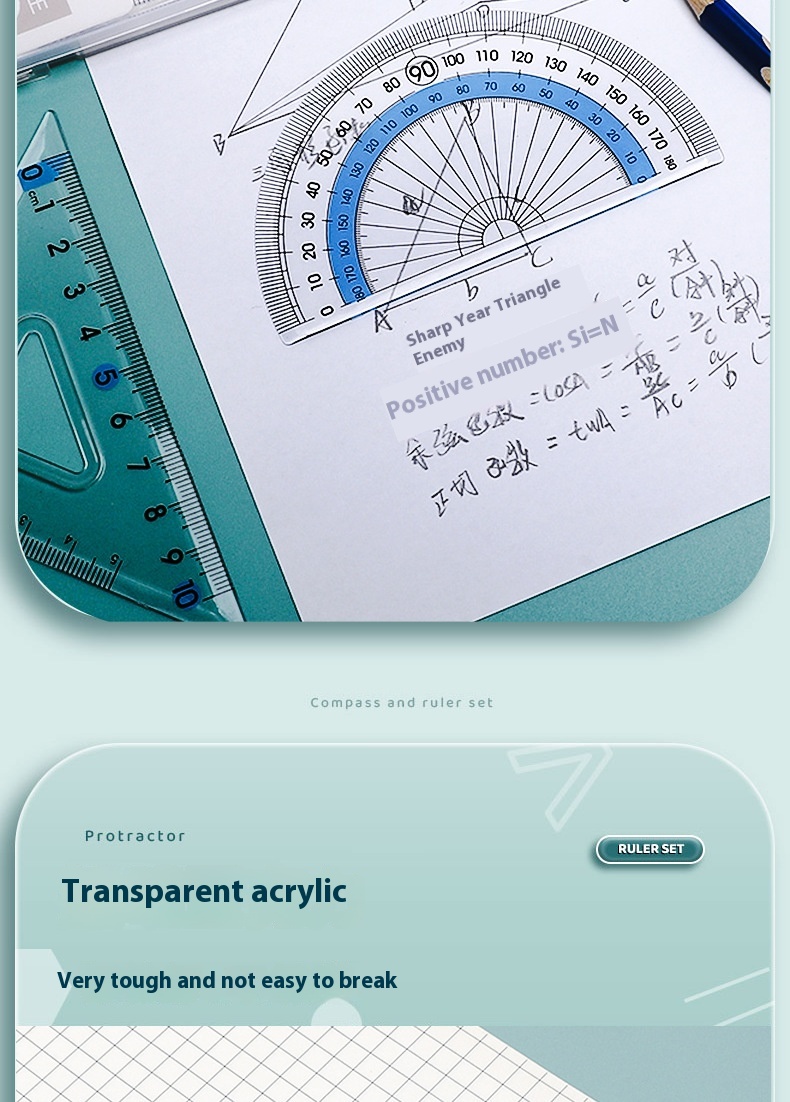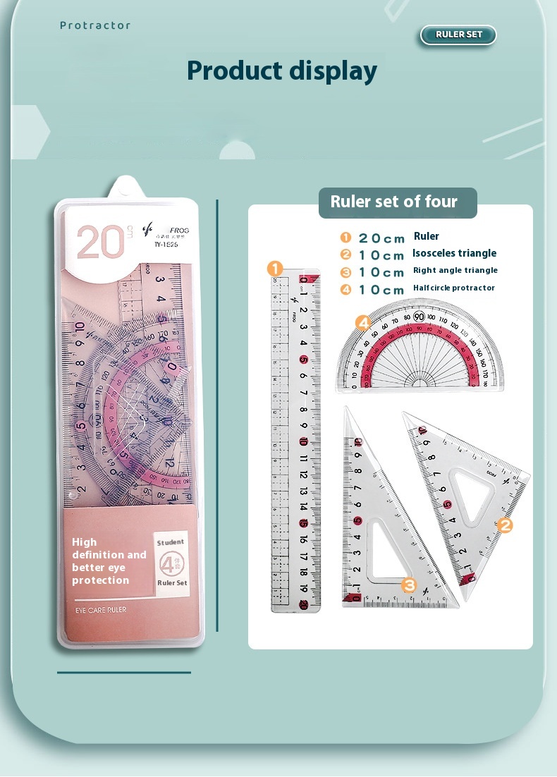 Youpai Ruler Sets Transparent Acrylic Drawing Four-piece Square Protractor