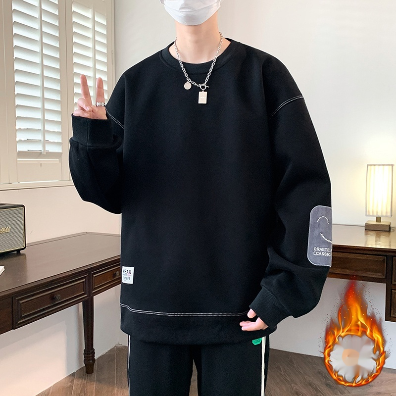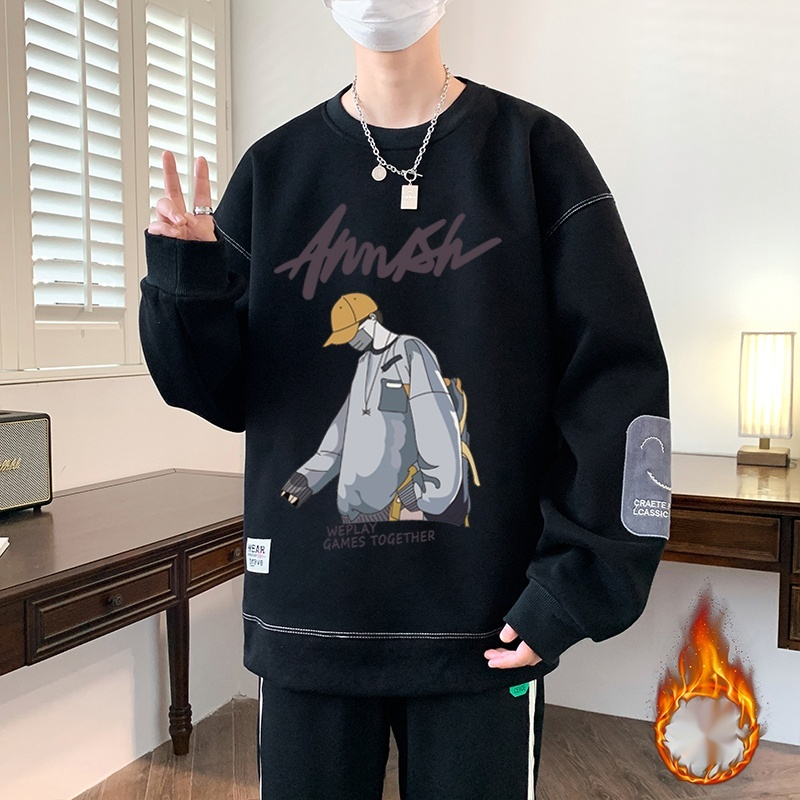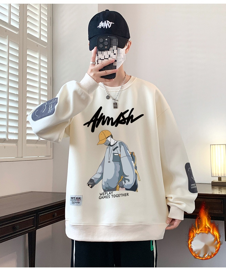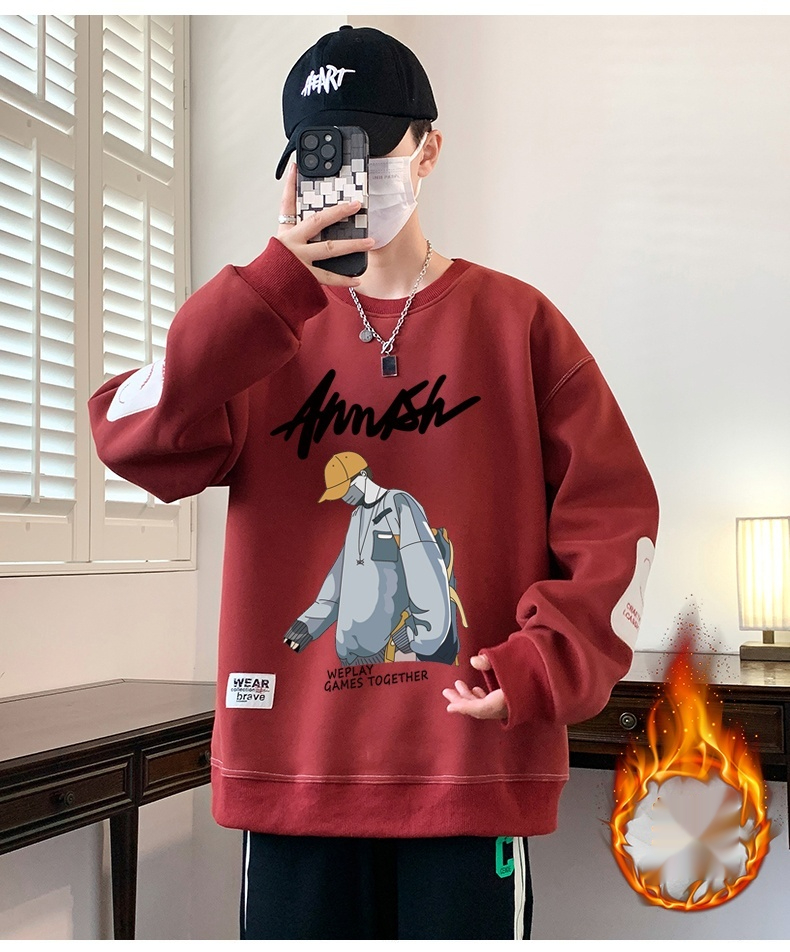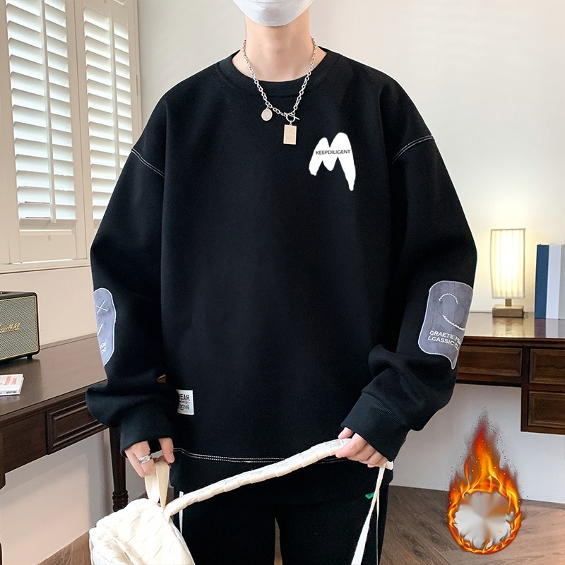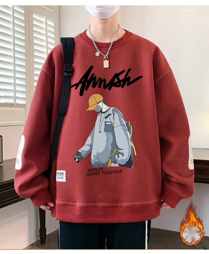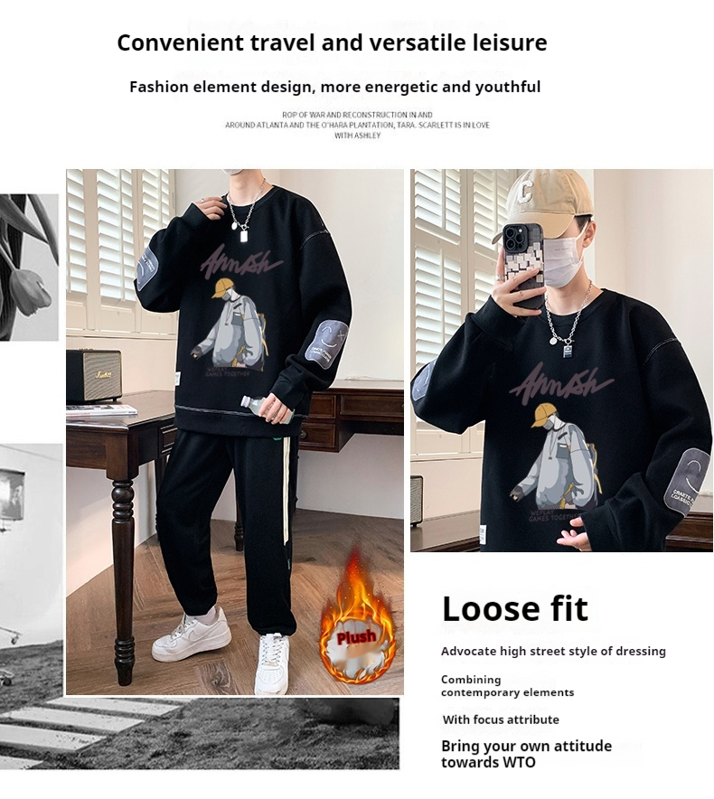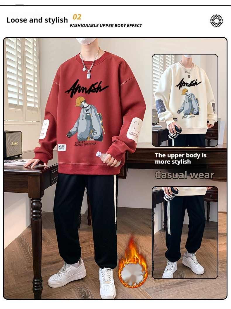 Youth Fleece-lined Thickened Men's Sweater Autumn And Winter Loose Fashion Brand Warm Top