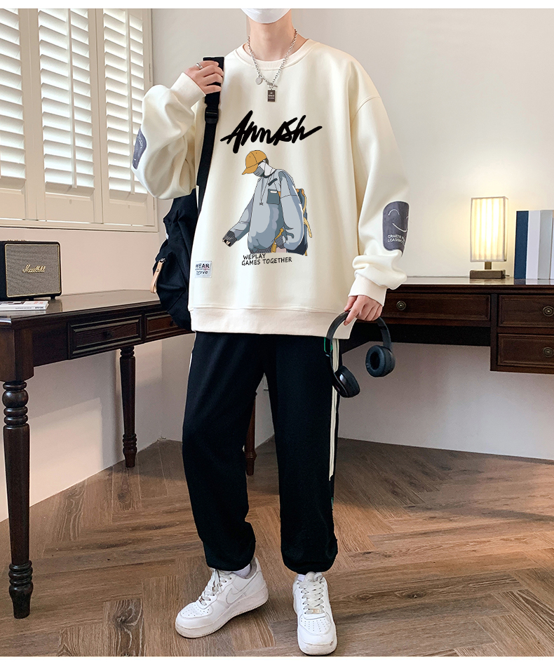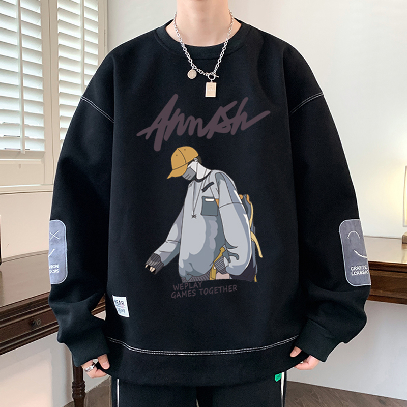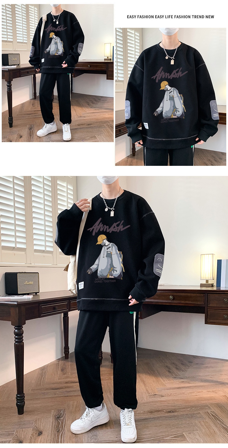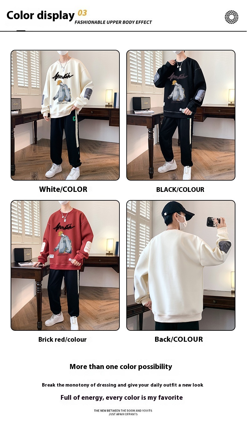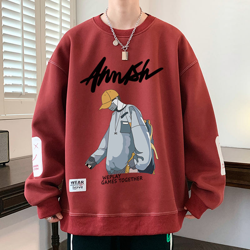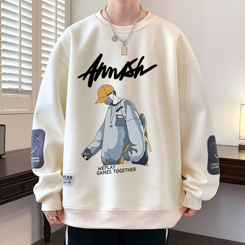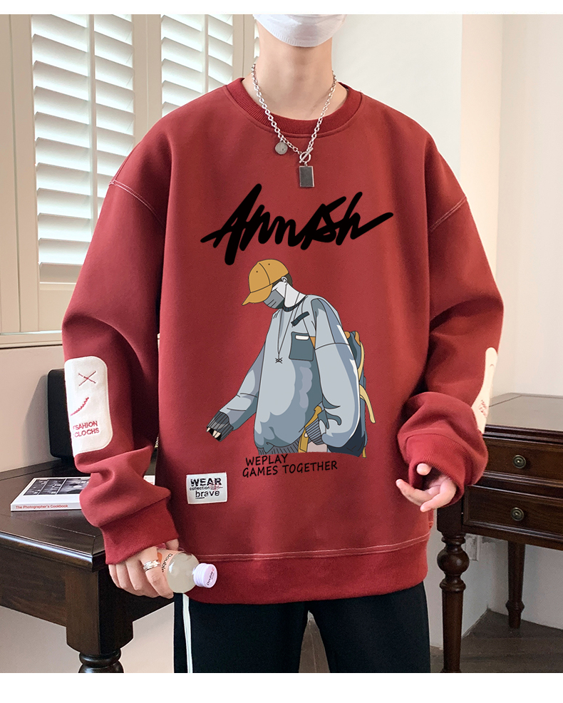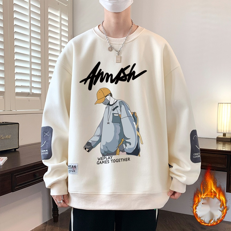 Youth Fleece-lined Thickened Men's Sweater Autumn And Winter Loose Fashion Brand Warm Top