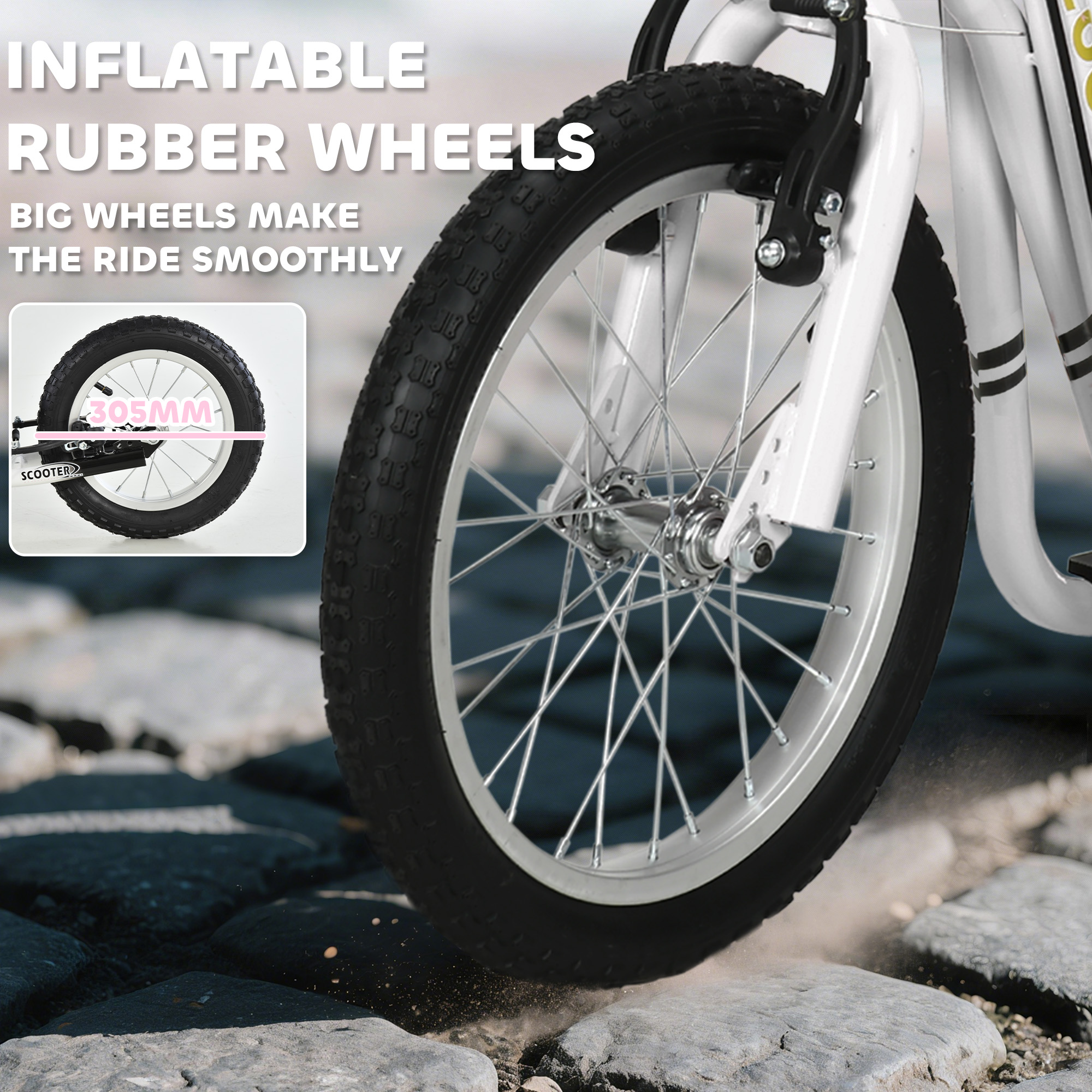 Youth Scooter Front And Rear Caliper Dual Brakes 12-Inch Inflatable Front Wheel Ride On Toy For Age 5+ - White