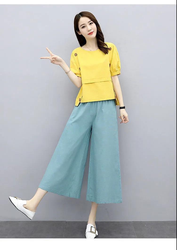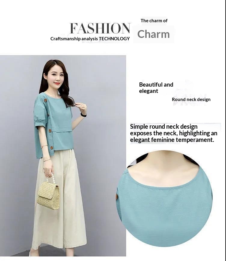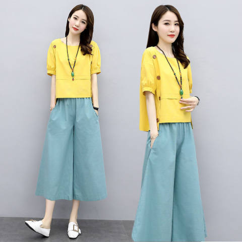 Youthful Wide-leg Pants Set Loose-fitting And Slimming