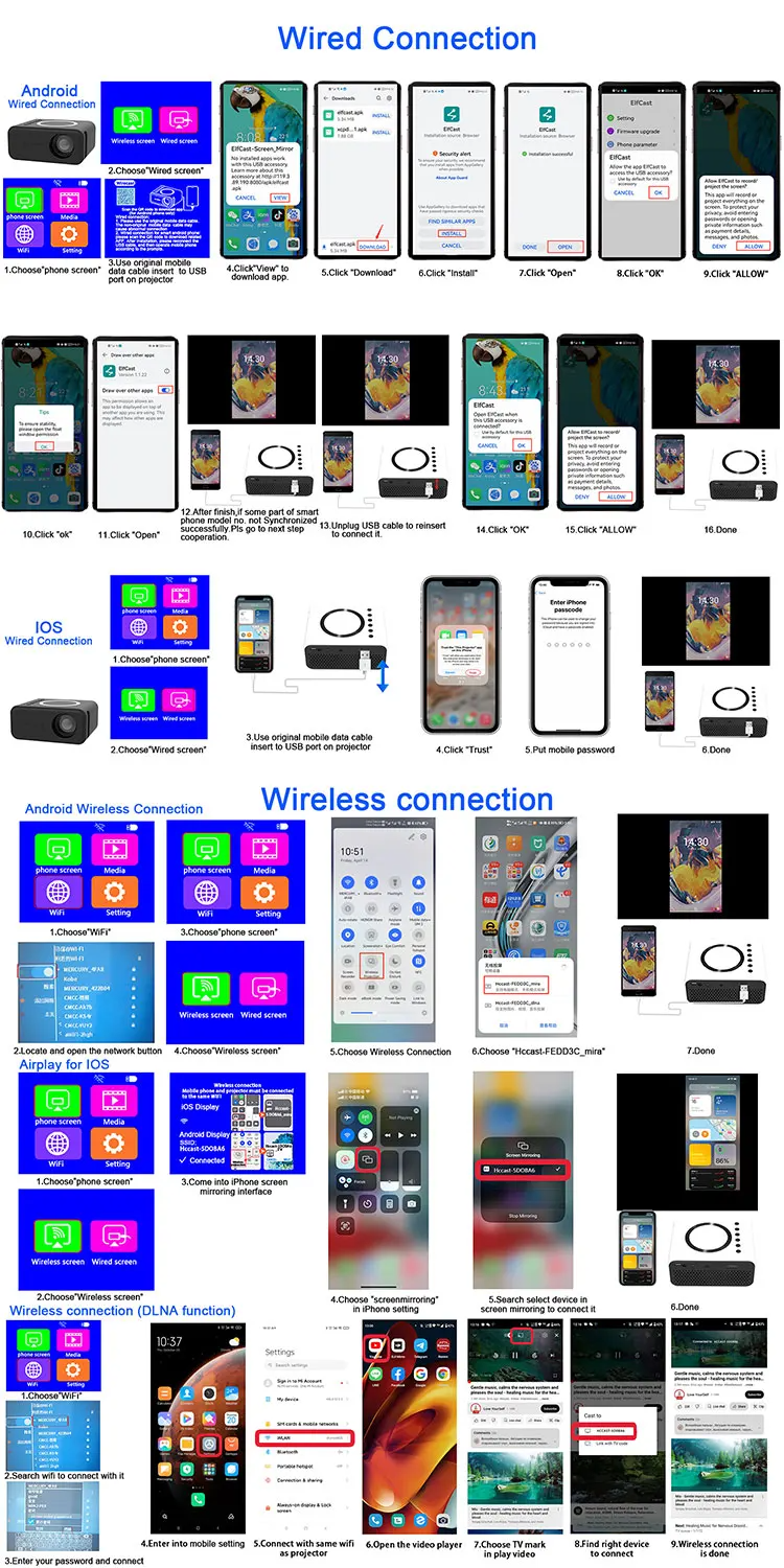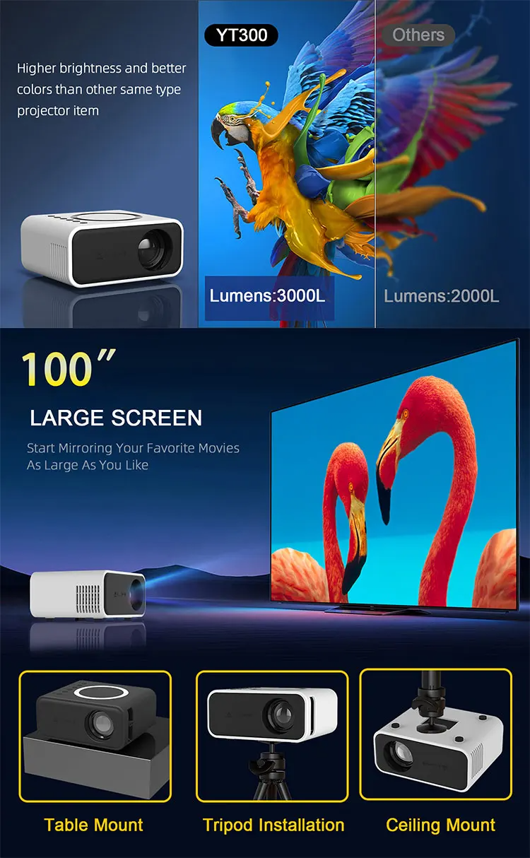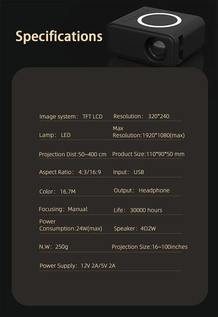 Projection Dist. | 0.5-3 M | System | Wired/Wireless connection |