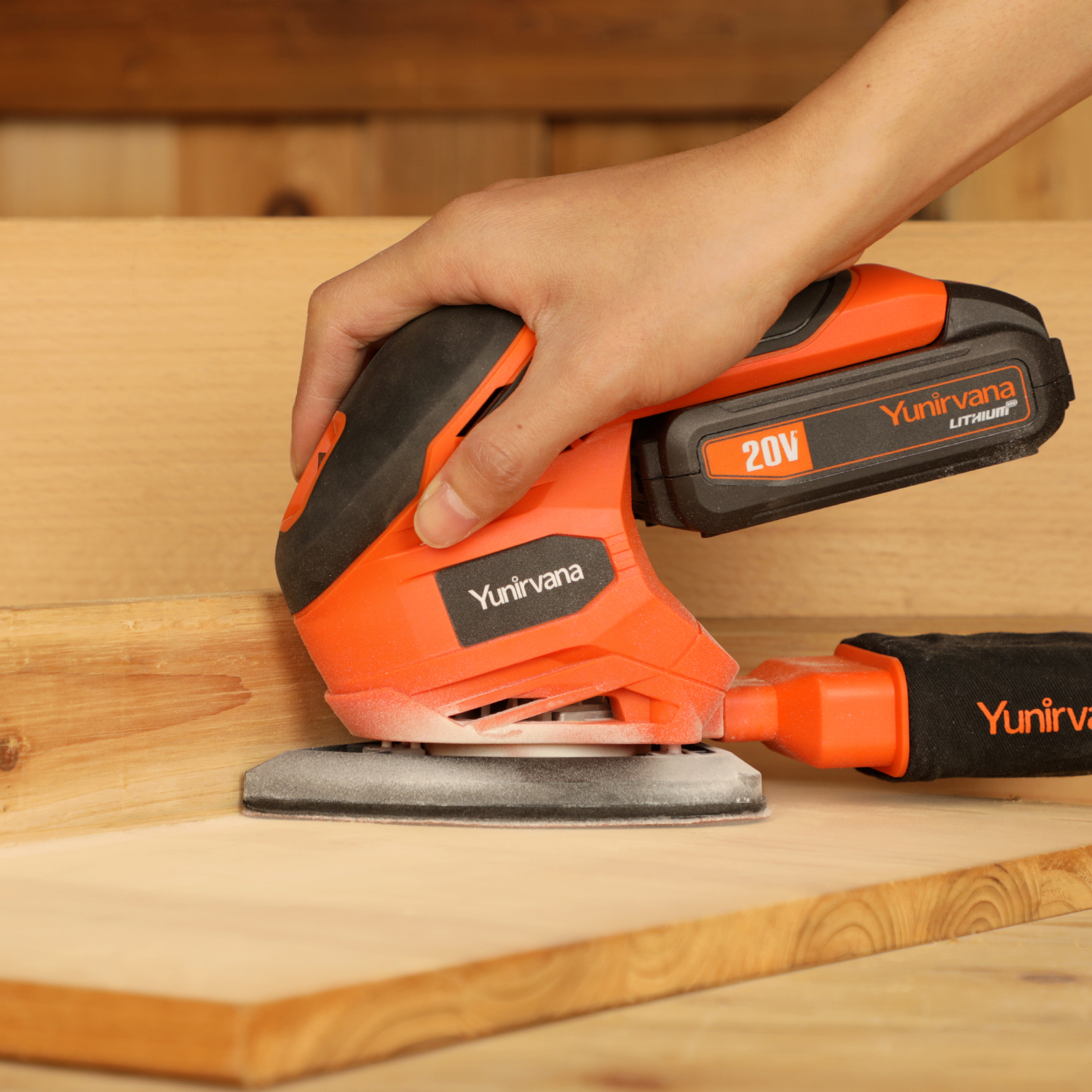 Comes with 5 sandpapers (60, 80, 100, 120 mesh) for various sanding needs. Unique dust collection design keeps your workspace clean, making it ideal for both fine sanding and large areas.