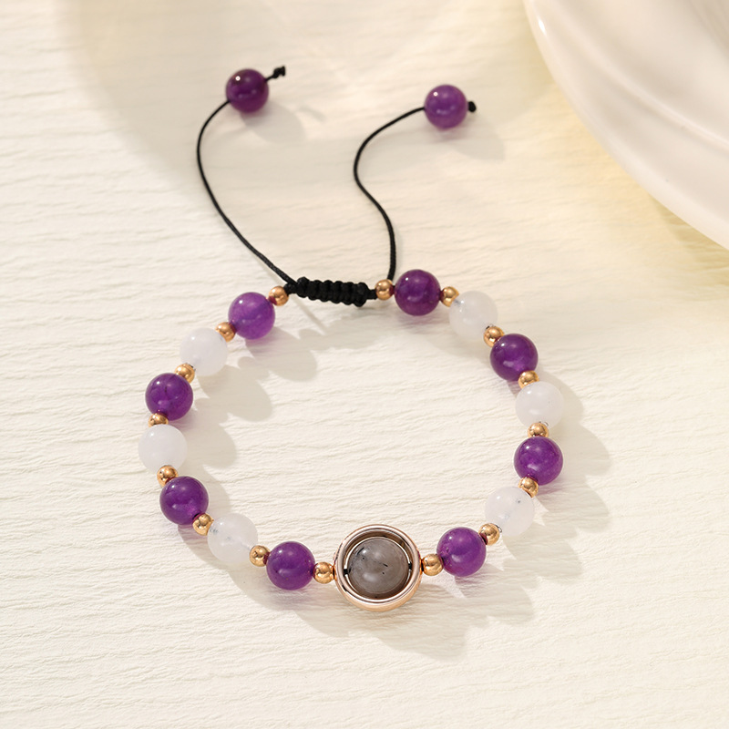 Color: Amethyst white moonlight spacer bracelet, amethyst braided rope bracelet, amethyst square stone