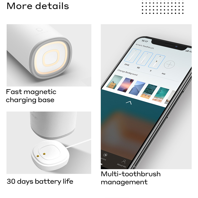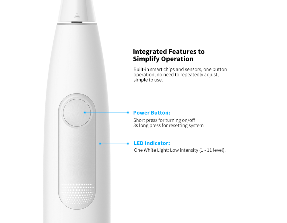 4. Automatically shuts off when two minutes are up with smart timer. The interval stops reminding you to change the brushing area every 30 seconds. So you'll never miss cleaning a single spot.
